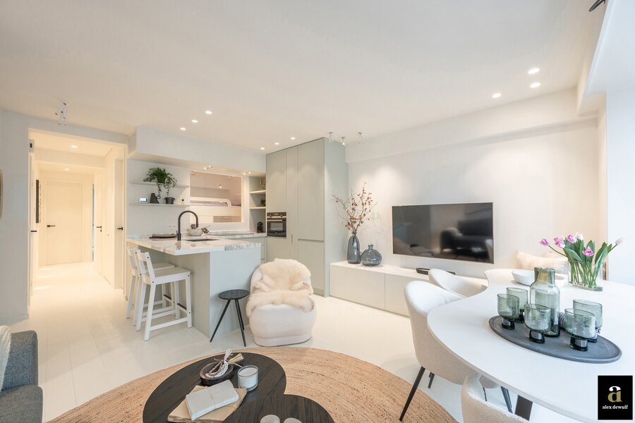 Volledig gerenoveerd 3-slaapkamerappartement met zijdelings zeezicht, gelegen in een charmante zijstraat tussen de Zeedijk van het Zoute en de Kustlaan. Op wandelafstand van het Driehoeksplein.