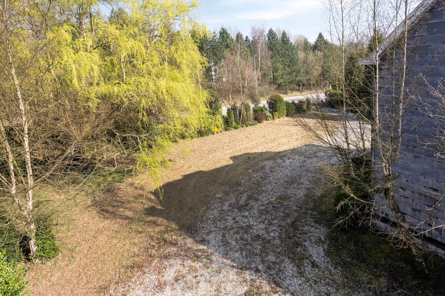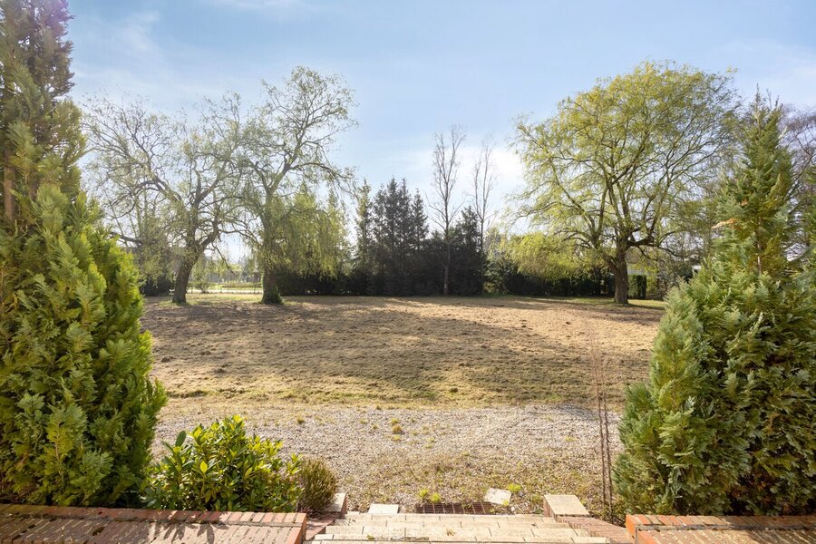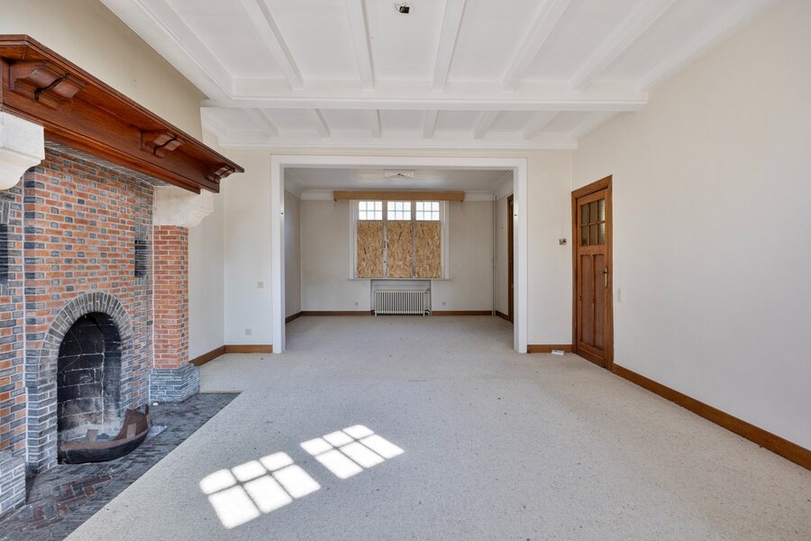 Bij binnenkomst via de statige inkomhal, voorzien van een vestiaireruimte en een gastentoilet, leidt een dubbele deur naar de ruime woonkamer. Deze is opgedeeld in een zithoek en een eethoek, met grote raampartijen aan de voor- en achterzijde die zorgen voor overvloedig natuurlijk licht. De open haard voegt extra gezelligheid toe. Een tweede leefruimte aan de tuinzijde is perfect bruikbaar als extra zithoek, bureau of hobbyruimte en biedt directe toegang tot het terras. Verder bevindt zich op het gelijkvloers een ruime keuken en geeft de zij-inkom toegang tot een douchecel en een extra toilet.
