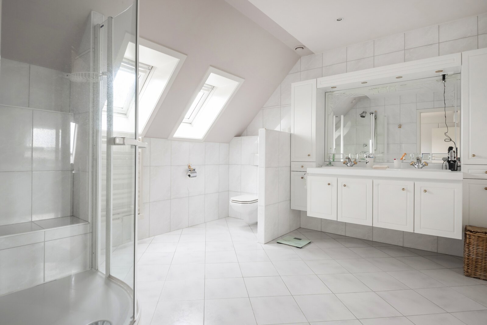 Op deze verdieping vinden we nog een ruime wasplaats met enkele kasten en via enkele treden nog een zolderruimte waar de twee boilers staan.
