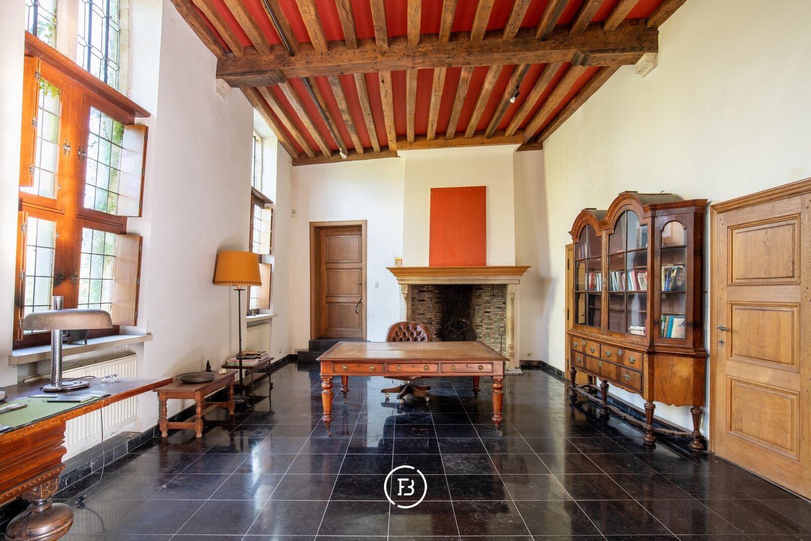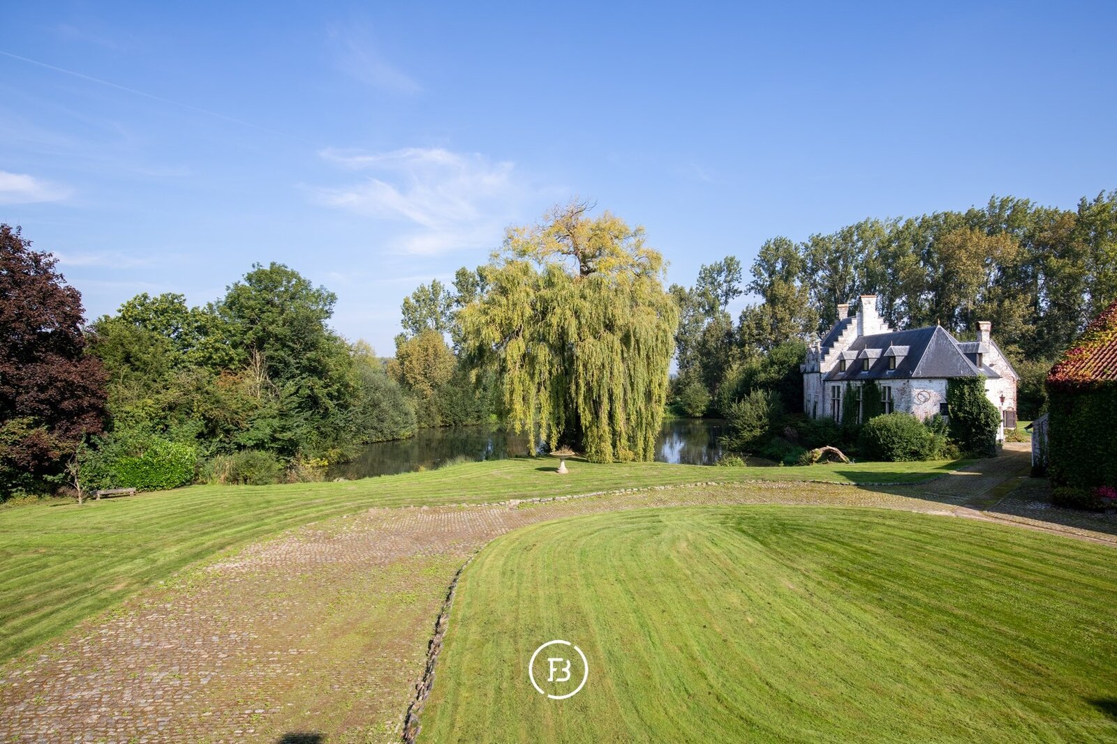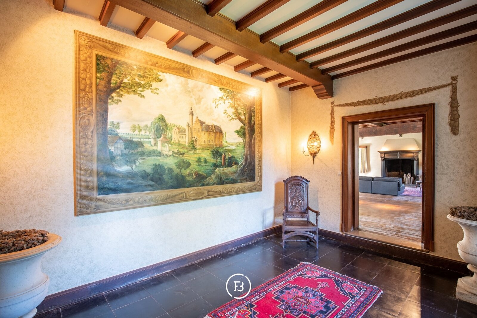 Het domein bevat verder nog een conciërgewoning (1 slk/1 badk), een ruime garage met verdieping, paardenstallen met authentieke binneninrichting, ruime bijgebouw.