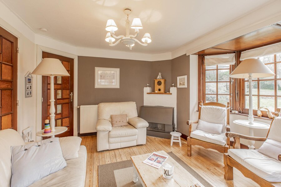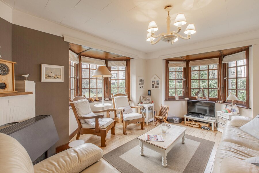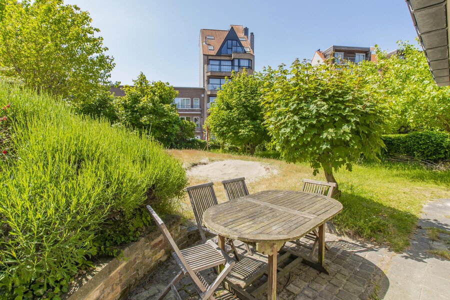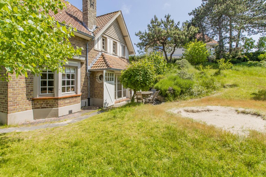 Charmante villa, rustig gelegen in een paadje in het Zoute op wandelafstand van de zee, het Albertplein en de Kustlaan. Tuin rondom de villa. Terras zuid gericht. 3 staanplaatsen voor auto's.