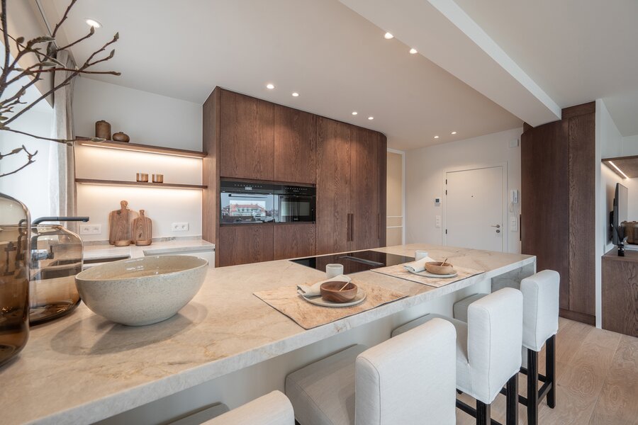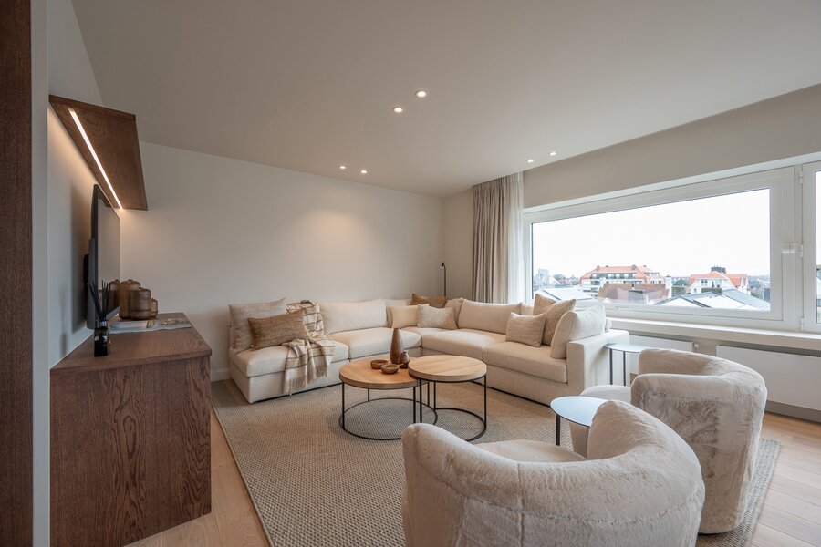 Op slechts een steenworp van de Zeedijk in Duinbergen bevindt zich dit volledig gerenoveerde en gemeubileerde hoekappartement, een parel van licht en ruimte. Met zijn hoogwaardige afwerking, stijlvol SCAPA meubilair, luxueuze gordijnen en verfijnde verlichting (inbegrepen in de vraagprijs), biedt dit appartement een onmiddellijk vakantiegevoel en maximaal wooncomfort.