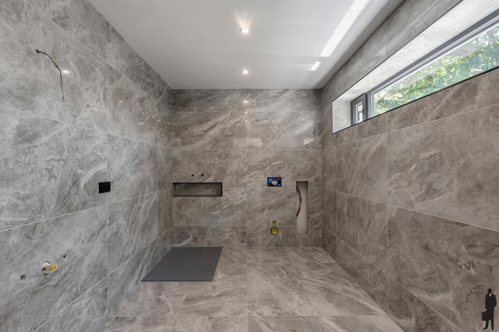 Tweede badkamer waarbij alle aansluitingen (douche, wastafel en toilet) reeds voorzien zijn – enkel de toestellen zijn nog te plaatsen