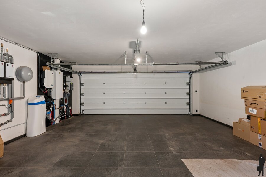 Inpandige garage met plaats voor twee wagens, voorzien van een automatische sectionaalpoort