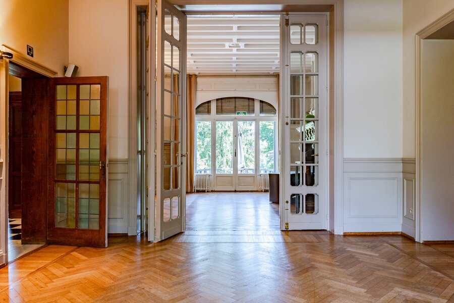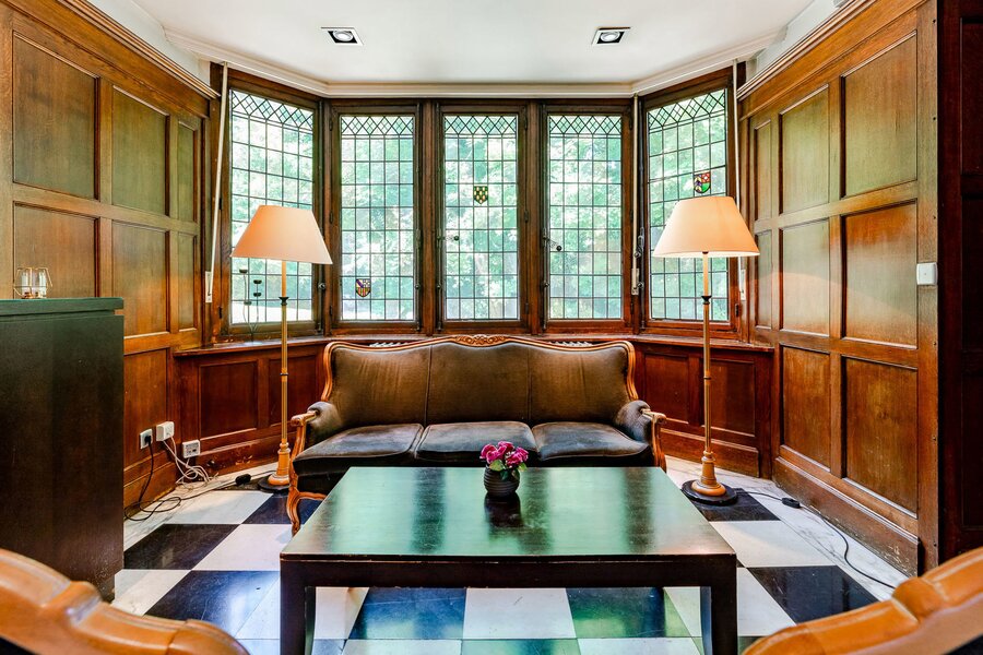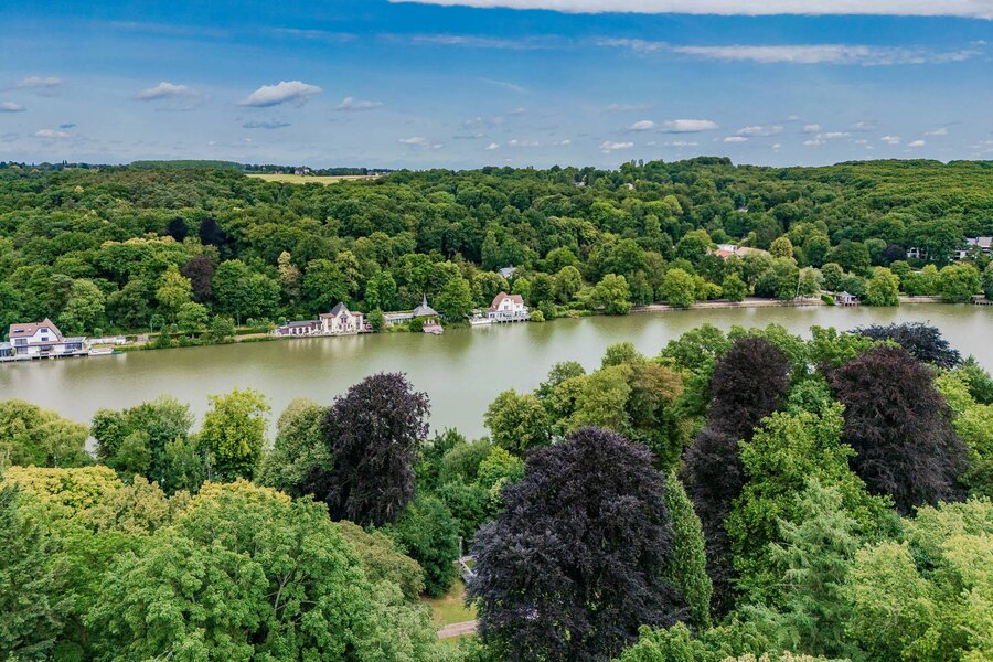 Dit karaktervolle pand met ongeveer 828 m² woonoppervlak (en ongeveer 321 m² kelderruimte) kijkt uit over het meer van Genval en heeft een boeiende cottage-stijl en minutieuze aandacht voor detail: visgraatmetselwerk, elegante bepleistering, beglaasde boogramen, tralievensters, balkons en een spel van volumes. Deze groene omgeving, gelegen op een terrein van ongeveer 75 hectare, kan worden verdeeld in drie percelen (afhankelijk van bouwvergunning).