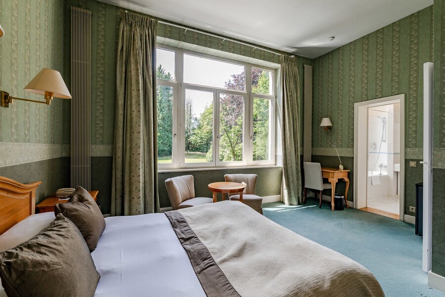 De entree, omlijst door zuilen en bekroond door een arcade van kalksteen, kondigt het nobele karakter van de locatie aan. Het gebouw, omringd door een groot terrein en meerdere parkeerplaatsen, wordt momenteel gebruikt als een hotel met 12 kamers met eigen badkamers, plus een onafhankelijk studio-appartement.