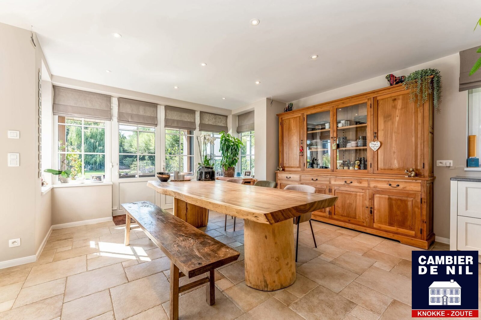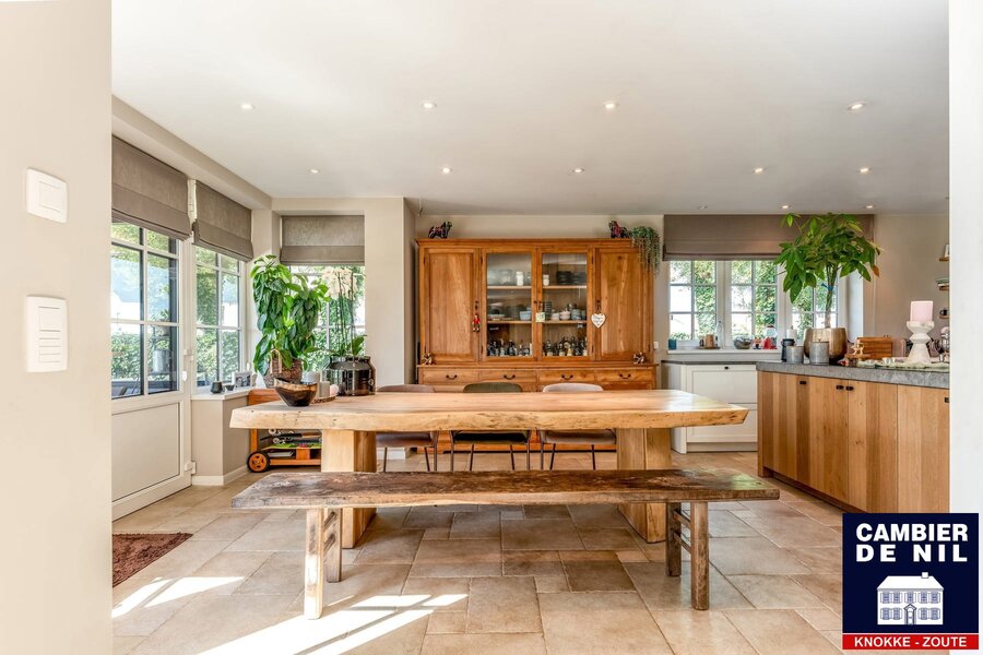 Indeling gelijkvloers: Inkomhal met vestiaire en apart toilet. De open lichtrijke leefruimte beschikt over een open haard, ruime eetkamer, de ruime volledig geïnstalleerde keuken is voorzien van alle comfort en geeft uit op het terras en de tuin. Daarnaast is er ook een grote bijkeuken en een praktische wasplaats/berging.