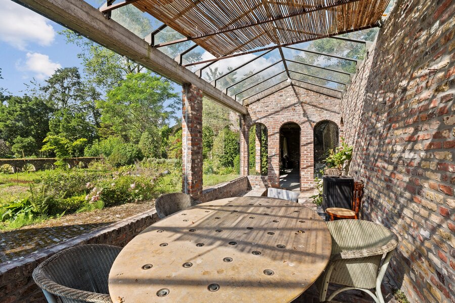 • Woonvolume, serre/wintertuin en schuur gegroepeerd rond een uniek erf