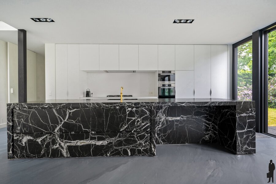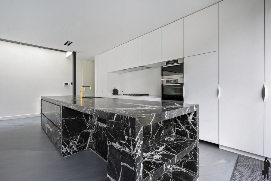 - Een riante open keuken met kookeiland uitgerust met o.a Miele vaatwasser, dubbele gootsteen met Quooker, Gaggenau gasfornuis, Novy dampkap, Miele oven en koelkast