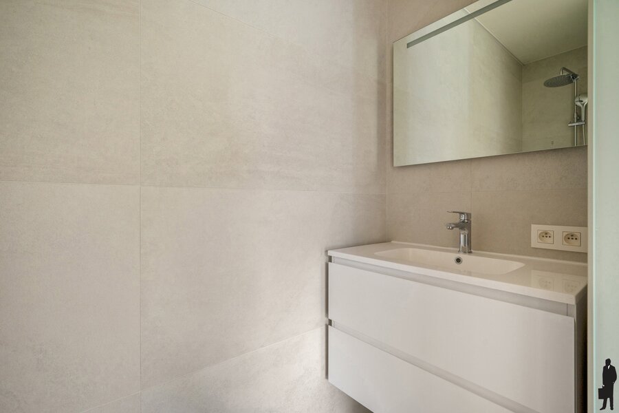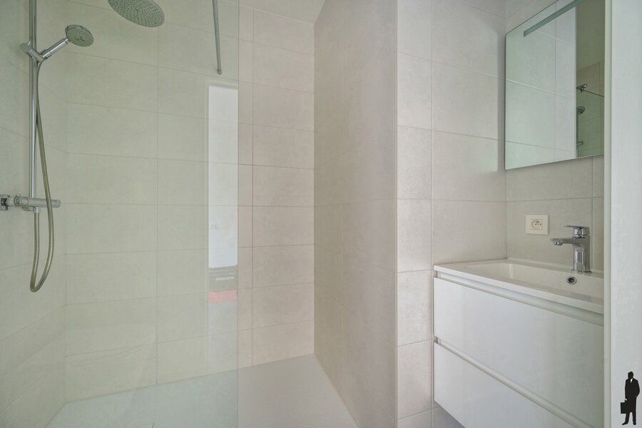 - Een tweede slaapkamer op parket met eigen douchekamer (inloopdouche, lavabo) en apart toilet
