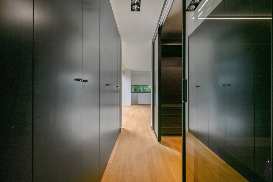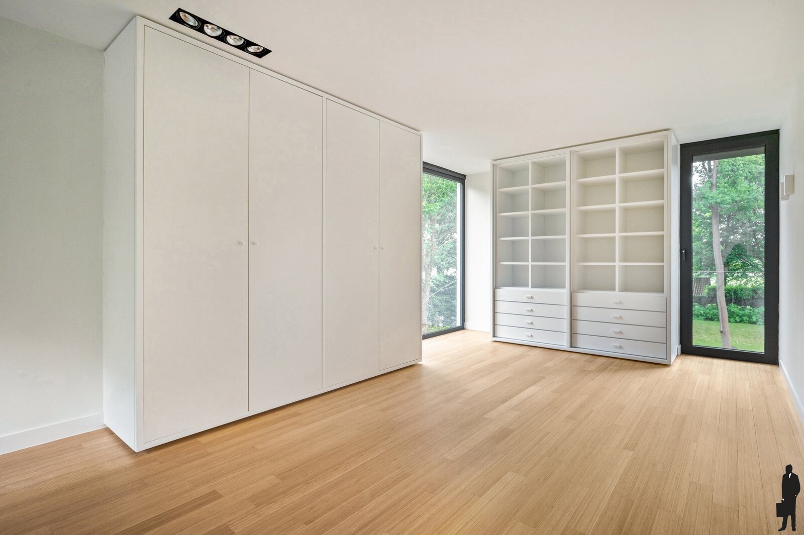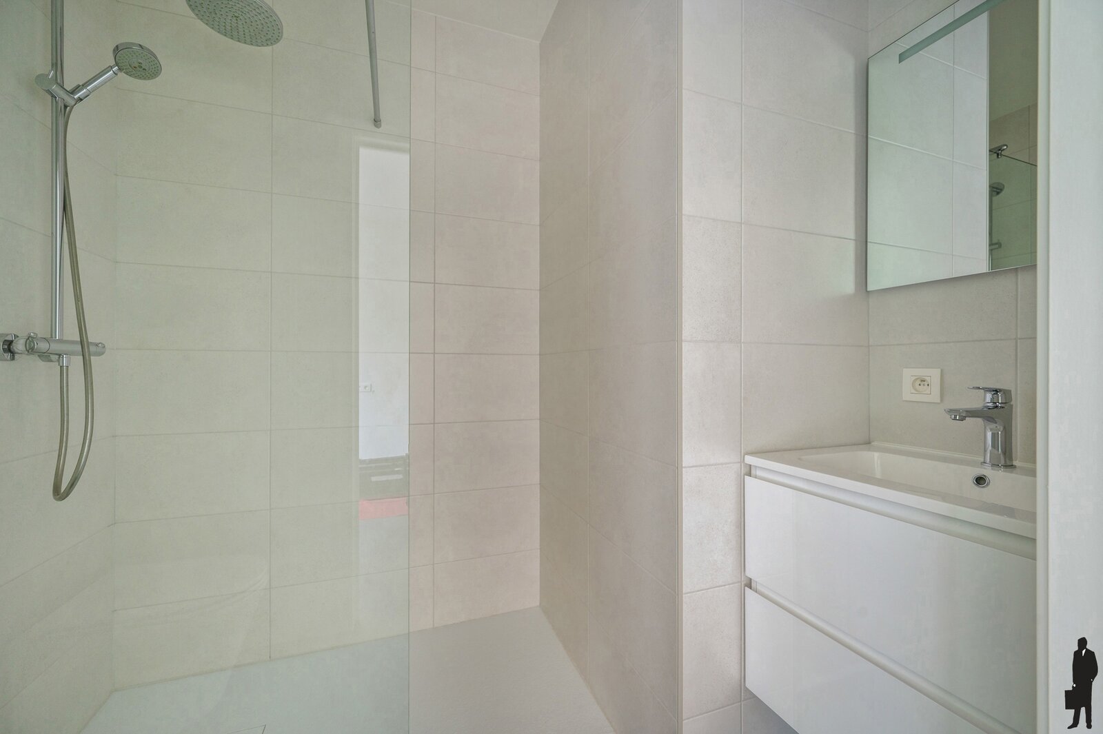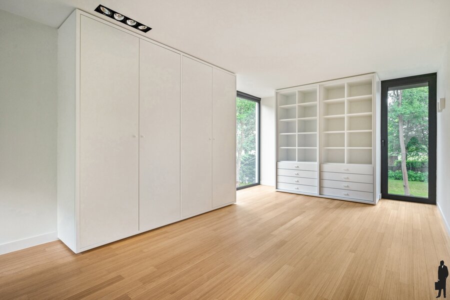 - Een vierde slaapkamer met douchekamer (inloopdouche, lavabo) en inbouwkasten