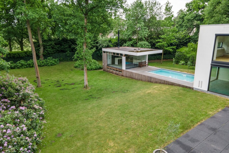- Een verwarmd zwembad aansluitend op de poolhouse