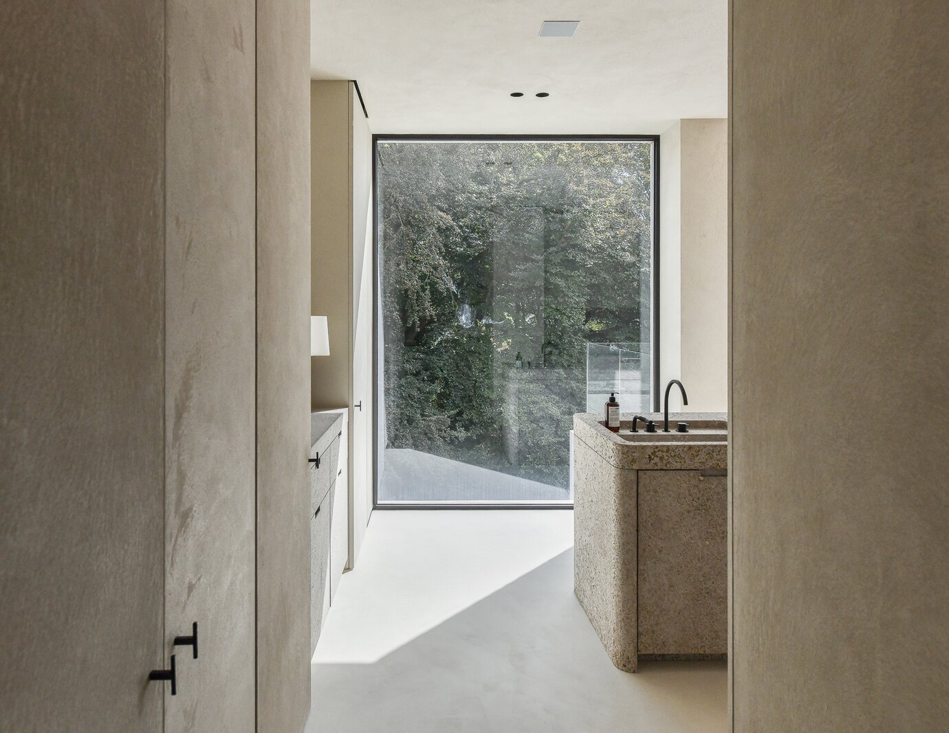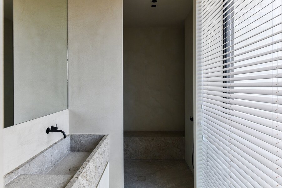 Twee ruime slaapkamers, eveneens met ingemaakte kasten, en elk een privatieve badkamer, met inloop-regendouches en strakke wastafels, waarbij de serene, kwalitatieve afwerking door het hele penthouse is gehanteerd.
