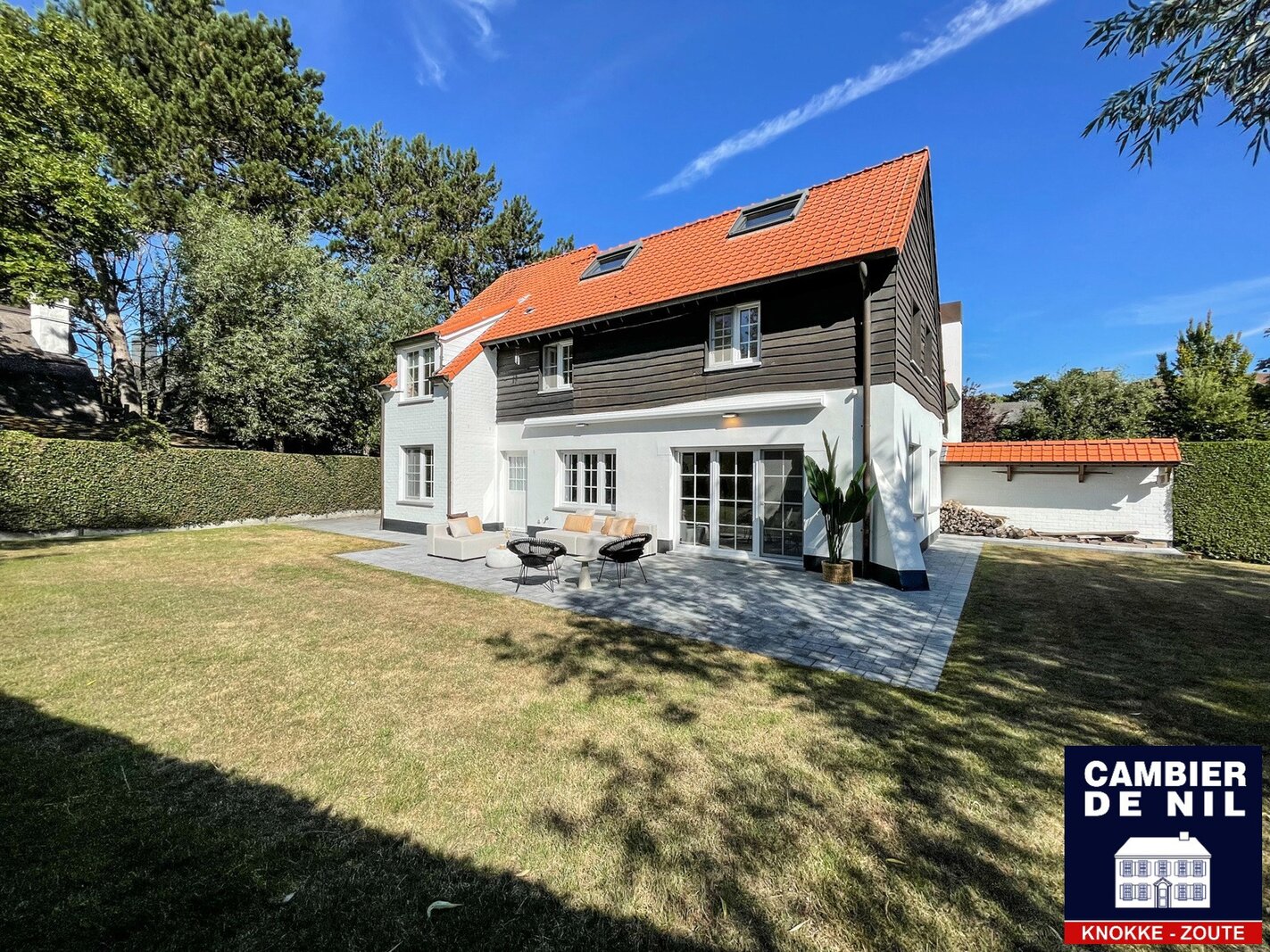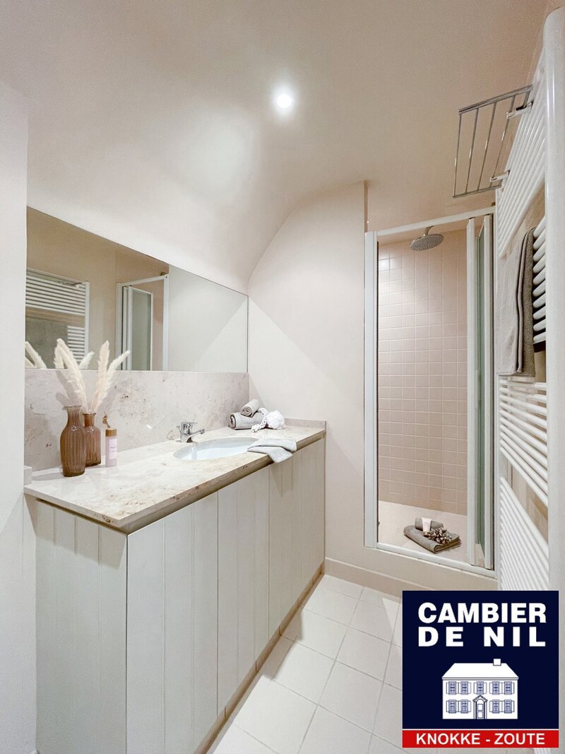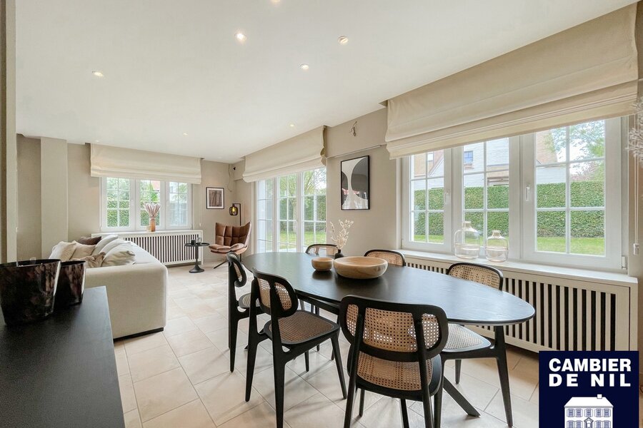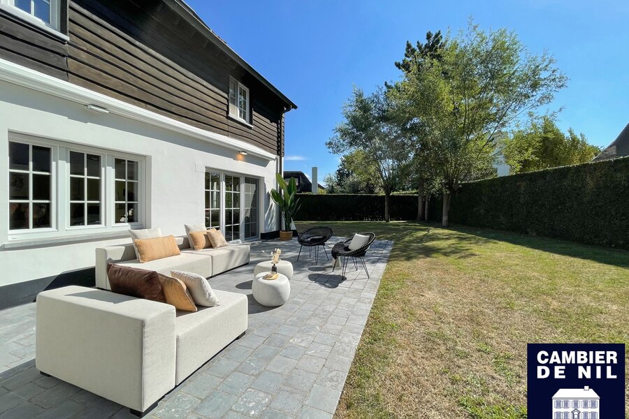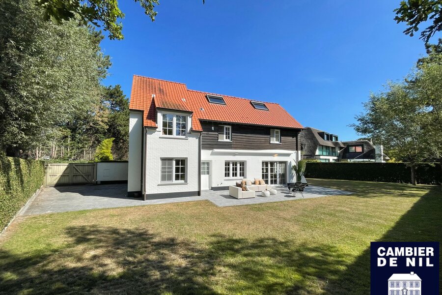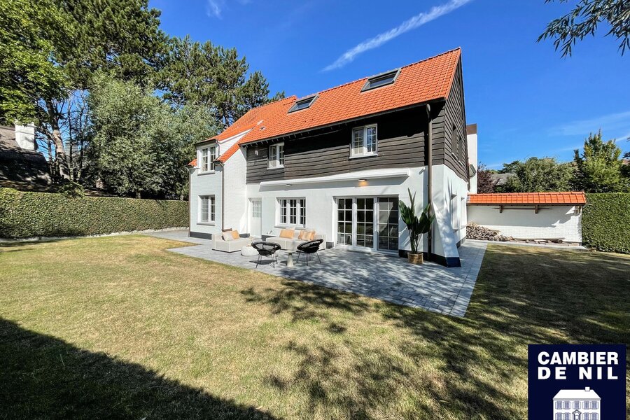 Perfect georiënteerde koppelvilla verscholen in een paadje in het Zoute, op enkele stappen van de Dominicanenkerk en de zee. Indeling: inkom met gastentoilet en vestiaire, lichtrijke woonkamer met open haard en eetkamer met toegang tot het terras en tuin, volledig ingerichte keuken met ontbijthoek, praktische berging. Op de eerste verdieping: hoofdslaapkamer met ensuite badkamer met douche (douche, lavabo en toilet). Tweede en derde ruime slaapkamer met inbouwkasten. Aparte badkamer met douche en lavabo. Bureau of tv-hoek. Op de 2e verdieping: slaapkamer en 2 extra ruimtes. Inpandige garage en toegang tot de ruime kelder. Kelder inclusief wijnkelder, opslagruimtes. Diverse parkeerplaatsen voor het huis.