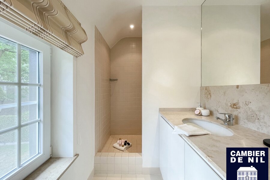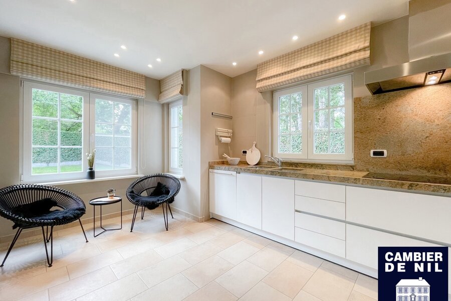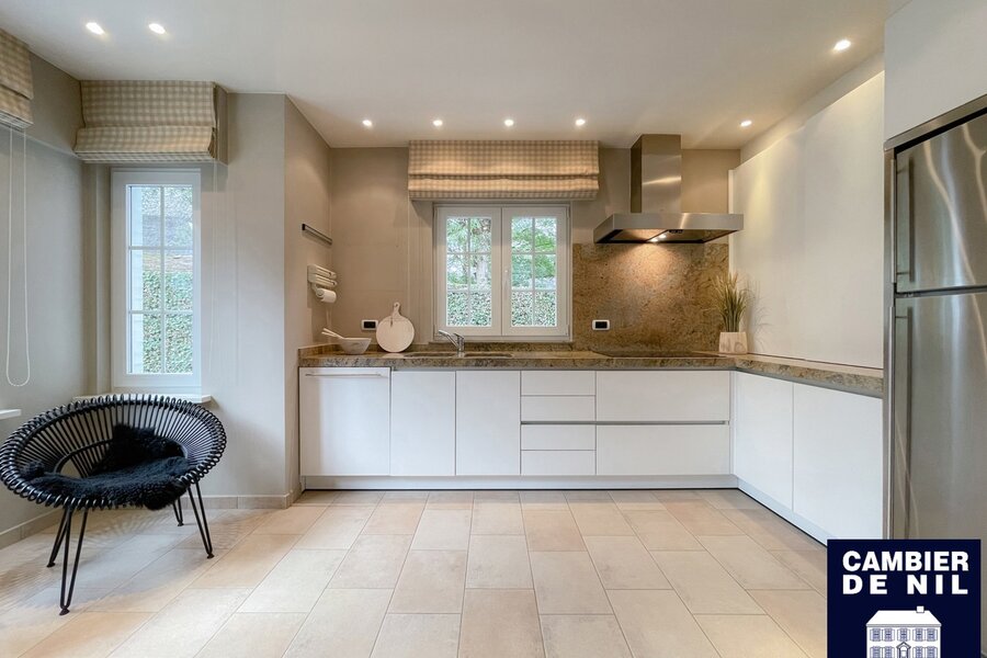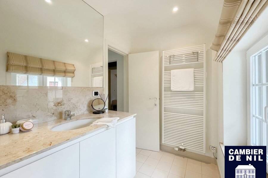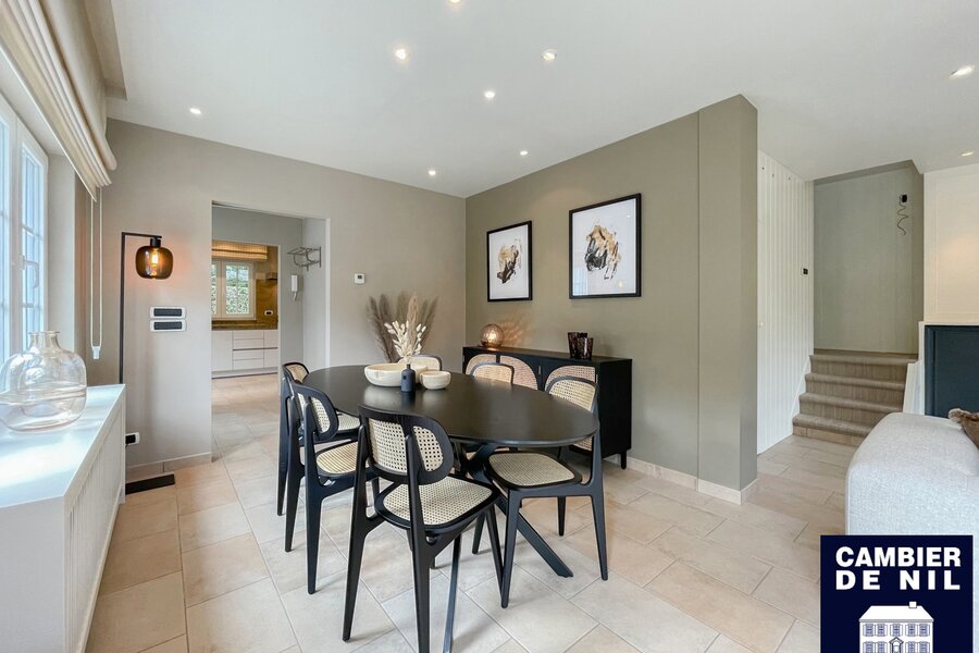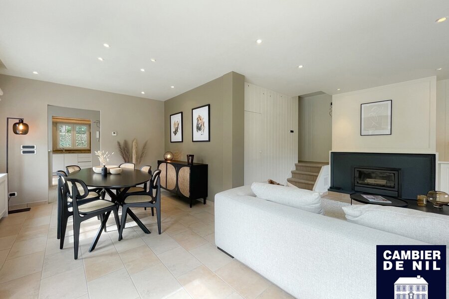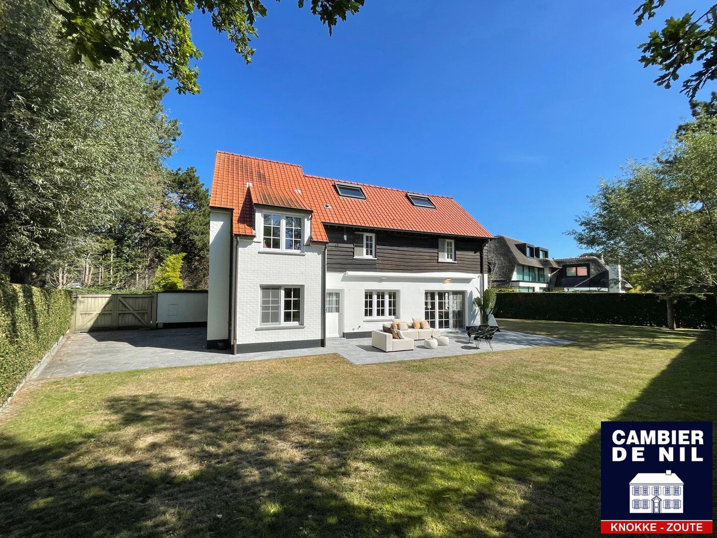 Perfect georiënteerde koppelvilla verscholen in een paadje in het Zoute, op enkele stappen van de Dominicanenkerk en de zee. Indeling: inkom met gastentoilet en vestiaire, lichtrijke woonkamer met open haard en eetkamer met toegang tot het terras en tuin, volledig ingerichte keuken met ontbijthoek, praktische berging. Op de eerste verdieping: hoofdslaapkamer met ensuite badkamer met douche (douche, lavabo en toilet). Tweede en derde ruime slaapkamer met inbouwkasten. Aparte badkamer met douche en lavabo. Bureau of tv-hoek. Op de 2e verdieping: slaapkamer en 2 extra ruimtes. Inpandige garage en toegang tot de ruime kelder. Kelder inclusief wijnkelder, opslagruimtes. Diverse parkeerplaatsen voor het huis.
