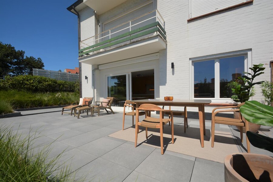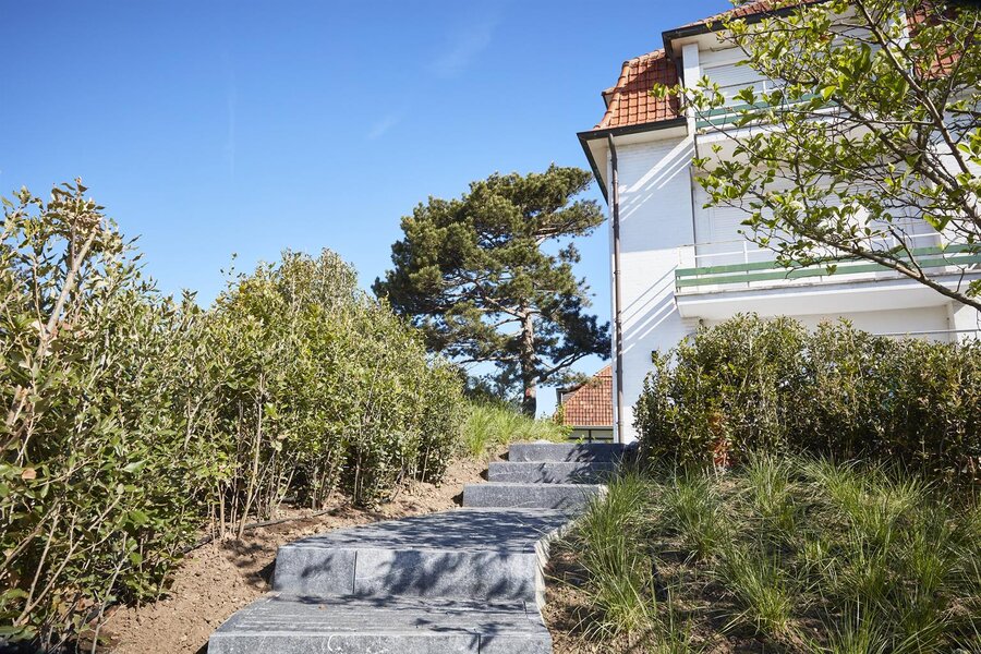 Luxueus tuinappartement met zuid-west oriëntatie in een standingvolle villaresidentie (nieuwe lift, nieuwe parlofonie) op enkele passen van het strand. Gelegen in het hartje van het Zoute, verscholen tussen het groen en genietend van een prachtig zicht.
