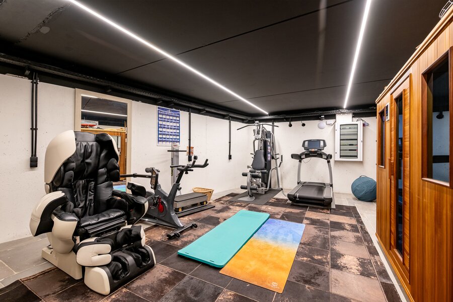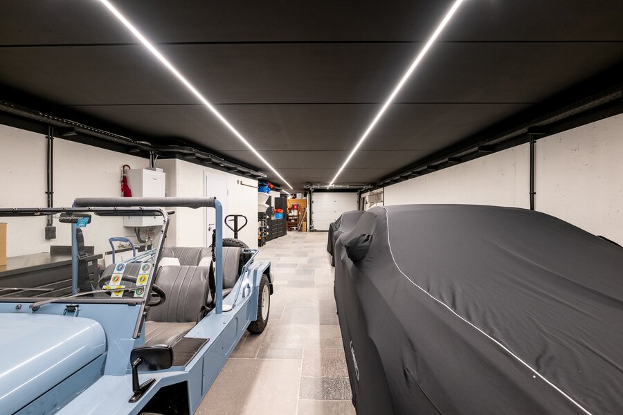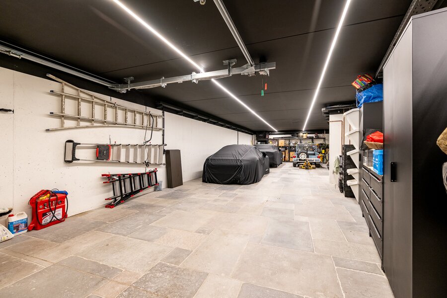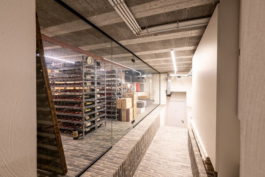Uitzonderlijke kelderruimte met wijnkelder, fitness en ruime garage voor meerdere wagens (toegankelijk via een autolift).