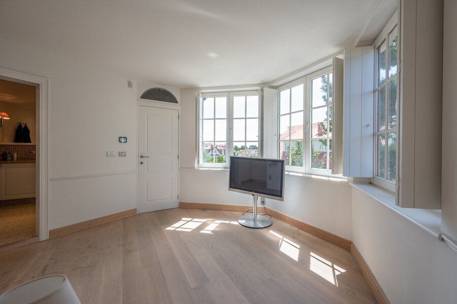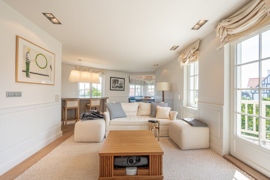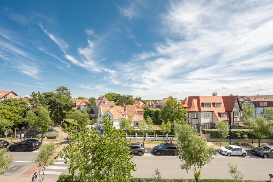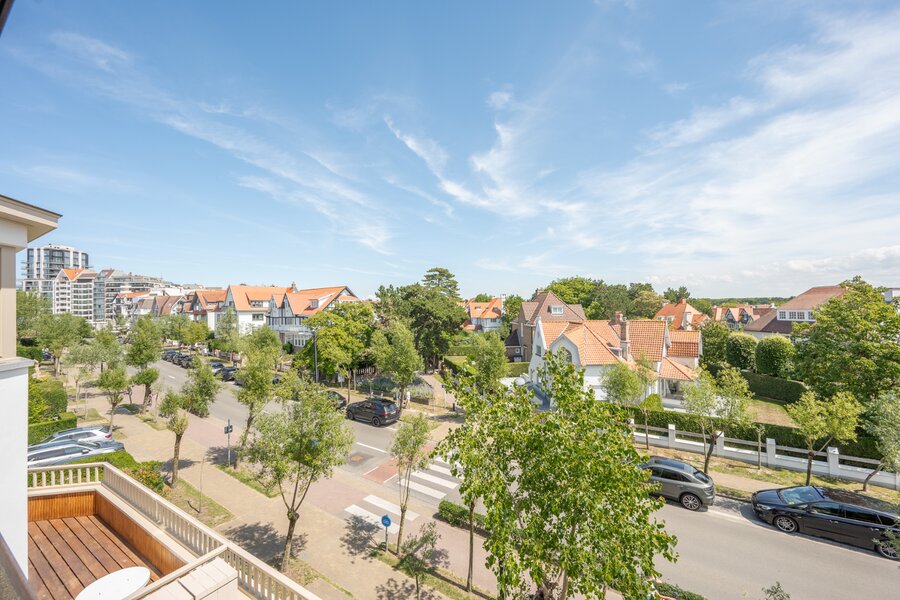 Instapklaar hoekappartement (duplex-penthouse) met 3 slaapkamers gelegen in een voorname villaresidentie in hartje Zoute, op slechts enkele passen van het Albertplein en het Dominicanenkerkje.