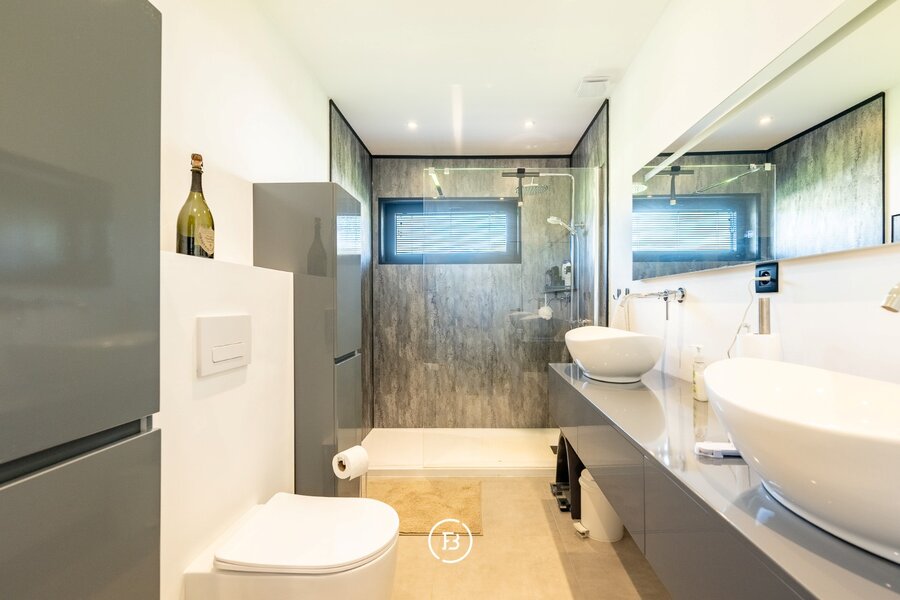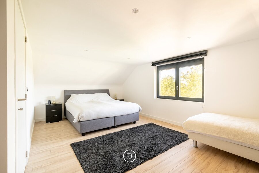 Op een uitgestrekt perceel van 5.209 m², omringd door groen en privacy, staat deze volledig gerenoveerde villa van 229 m², een huis dat design, comfort en duurzaamheid naadloos combineert. In 2022 werd geen detail overgeslagen: hoogwaardige materialen, een strakke moderne afwerking en stalen binnendeuren creëren een tijdloze, elegante sfeer die elke ruimte karakter geeft.