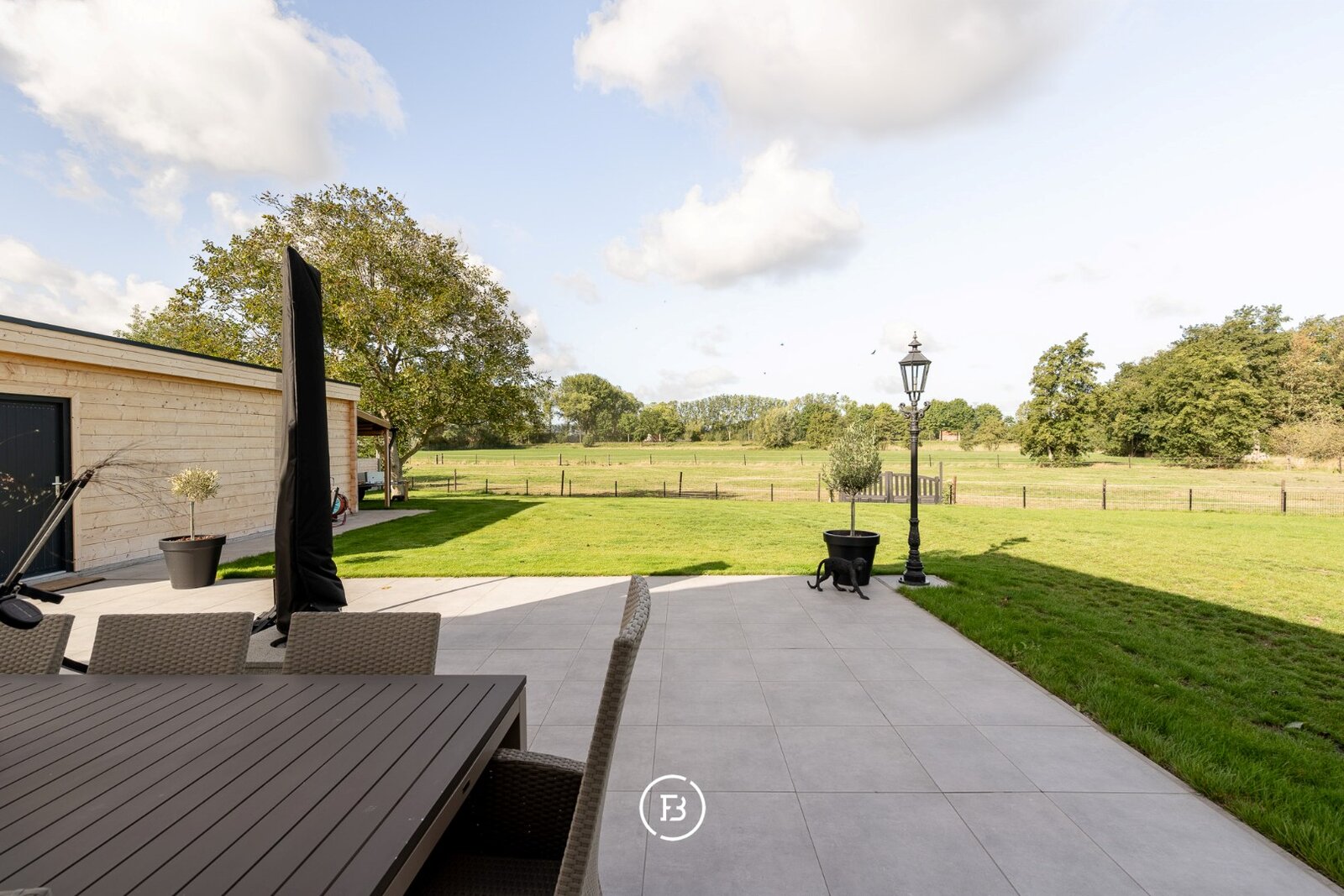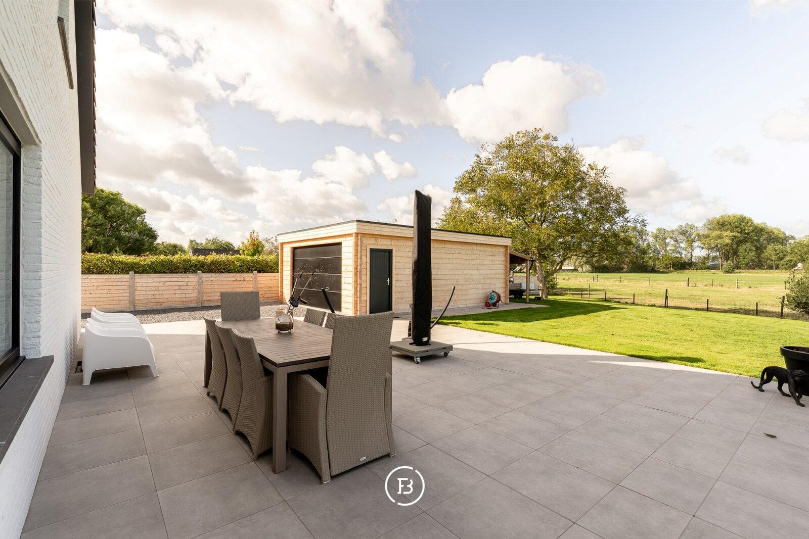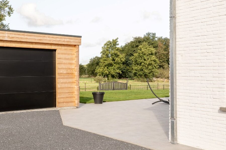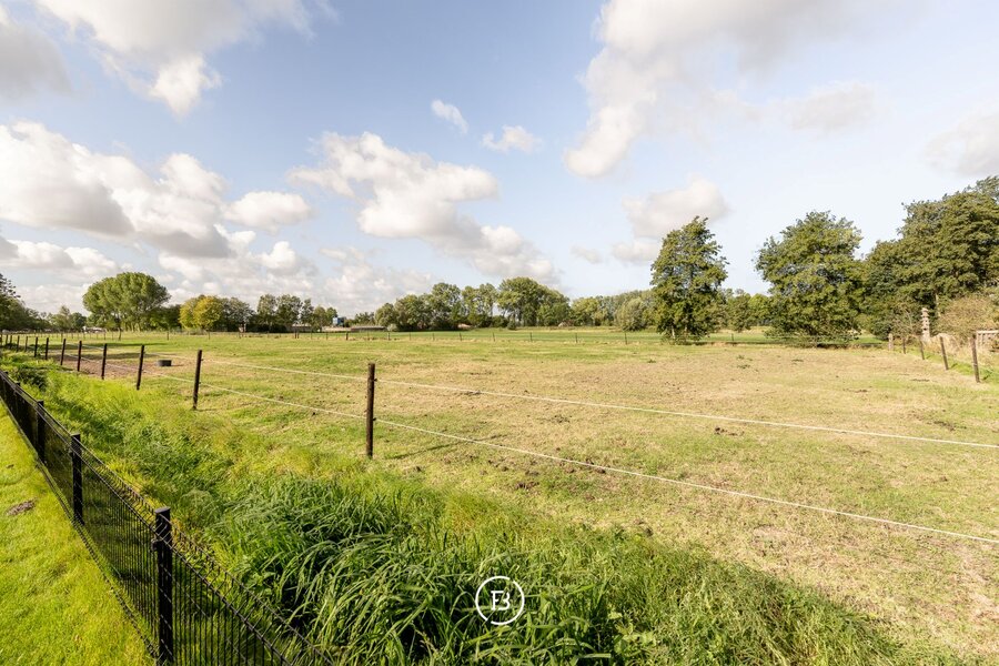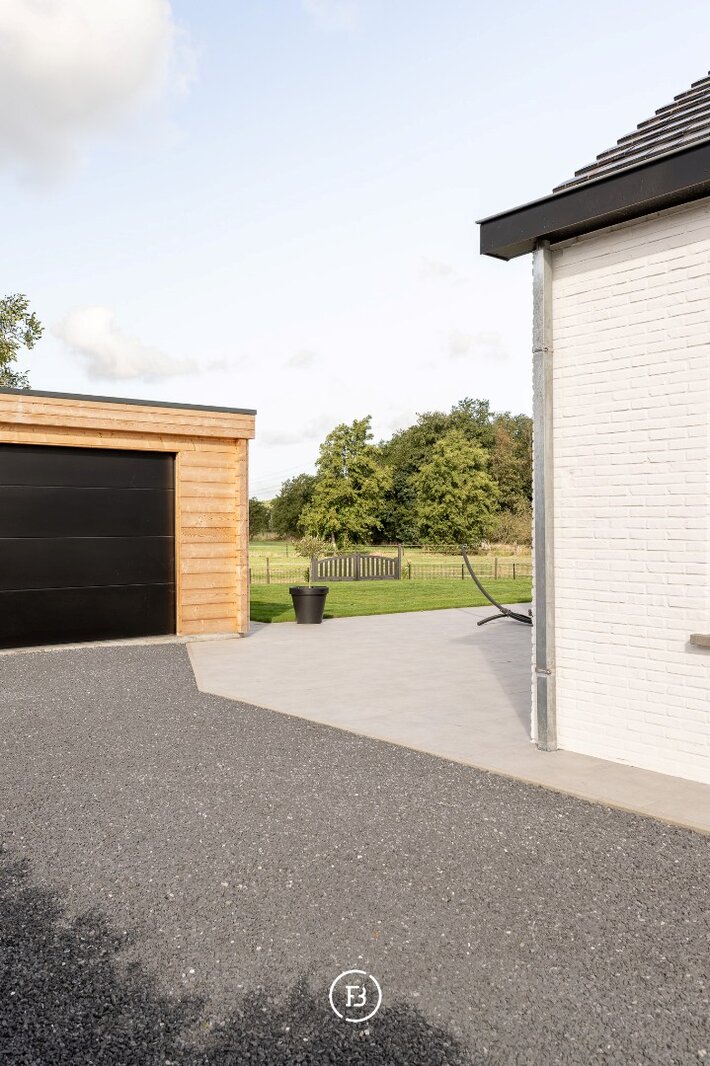 De aangelegde tuin en paardenweide vormen een idyllisch kader voor ontspanning, hobby of buitenactiviteiten. Een losstaande garage van 42 m² in houtskeletbouw biedt extra ruimte voor voertuigen of creatieve projecten.