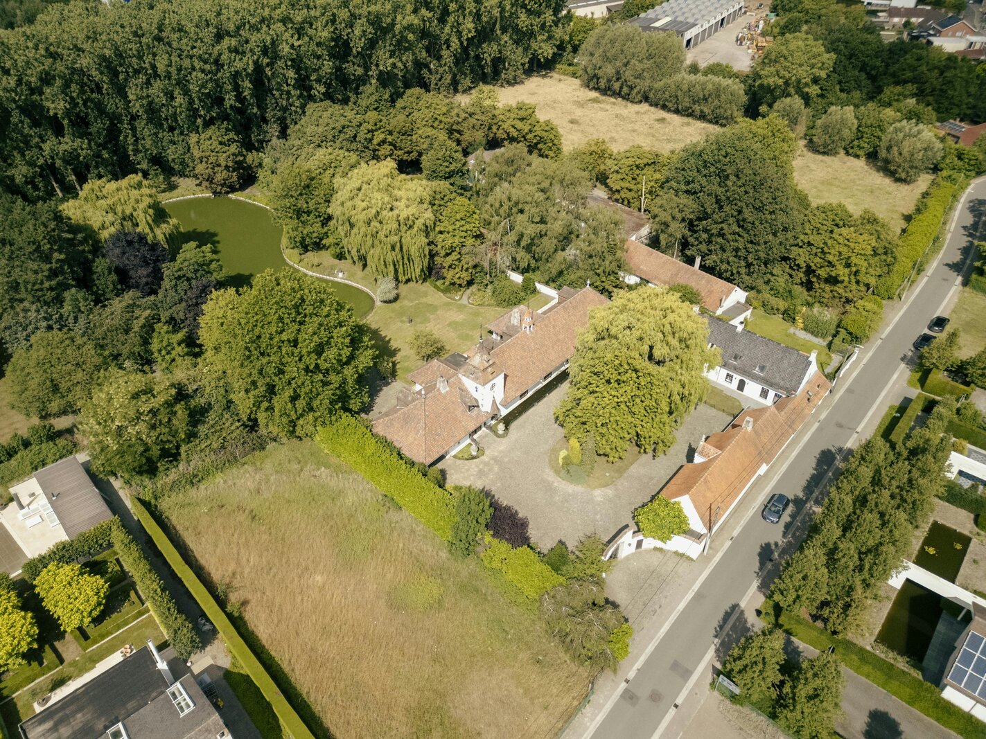 Deze exclusieve eigendom omvat een statige villa in kasteelhoevestijl (bouwjaar 1976), een afzonderlijke conciërgewoning (ca. 201 m² bewoonbare oppervlakte) en diverse bijgebouwen, waaronder stallingen en een feestzaaltje. De villa beschikt over een royale bewoonbare oppervlakte van 683 m² en straalt een landelijke elegantie uit die onmiddellijk charmeert.