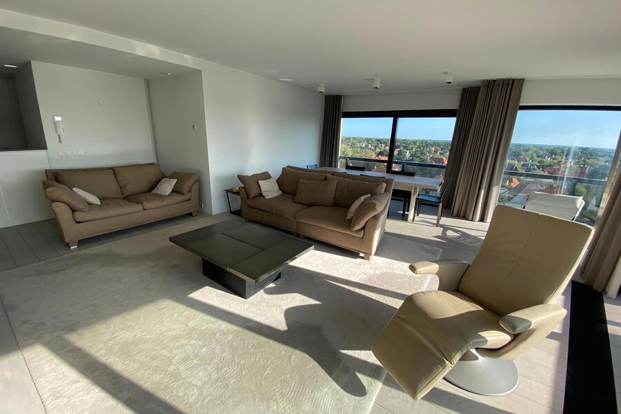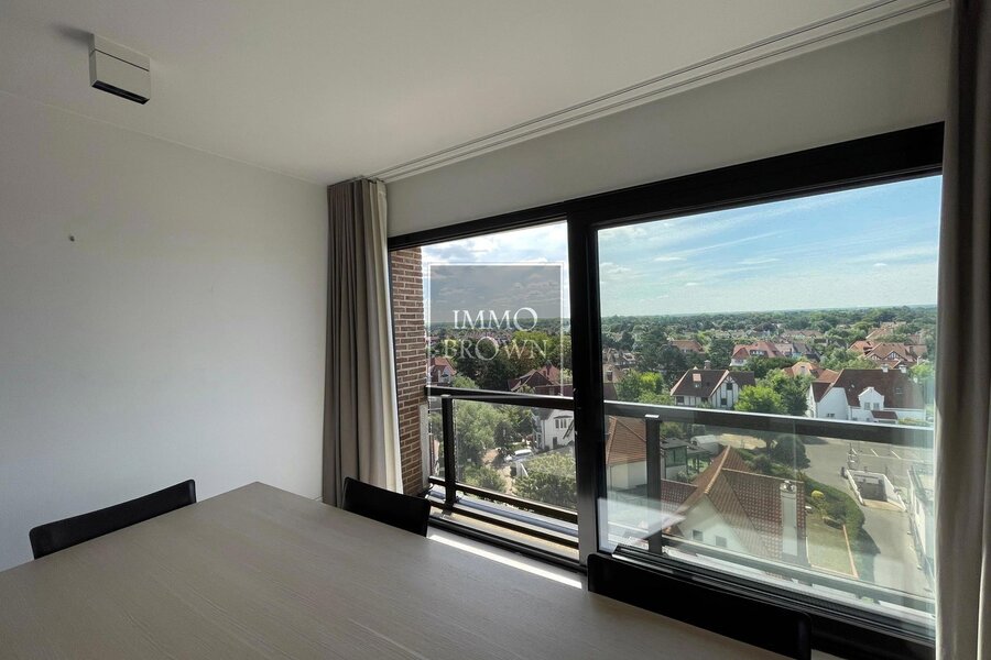 Uniek aanbod: ruim hoekappartement van ca. 116 m² op de 7de verdieping van een standingvolle residentie, op een absolute topligging aan het iconische Albertplein in hartje Zoute. Geniet van een prachtig open uitzicht op het hinterland én de zee, op wandelafstand van het strand, de dijk en exclusieve winkels.