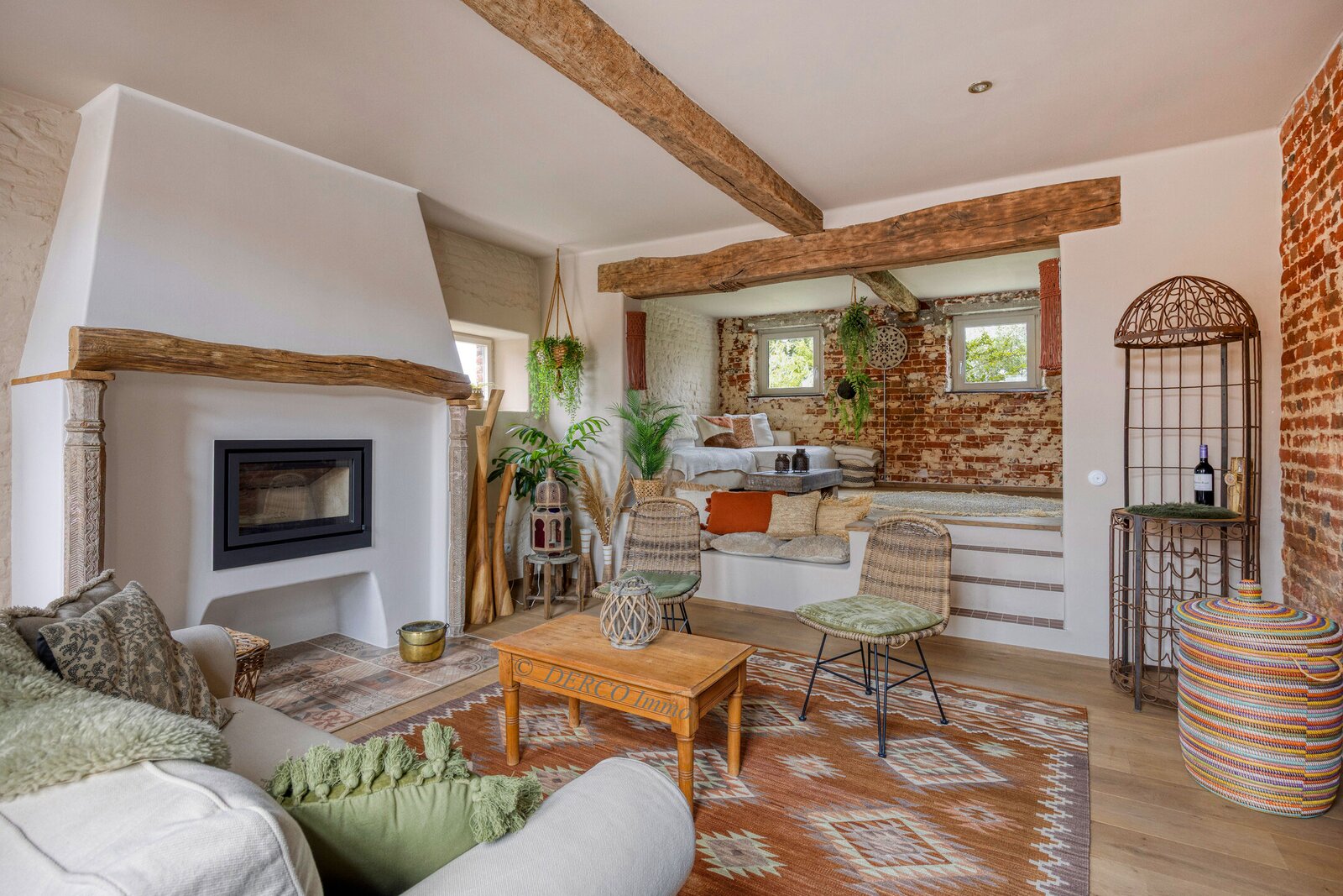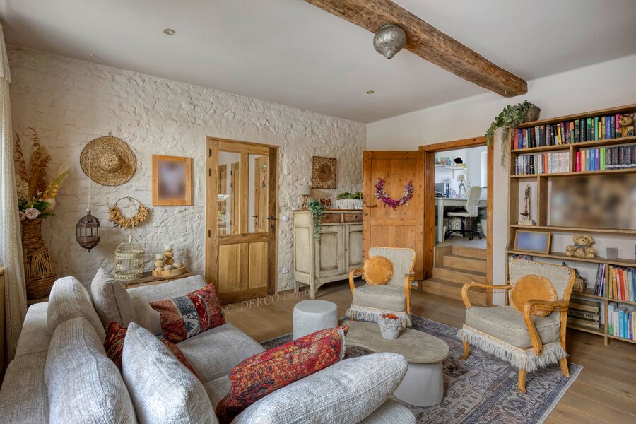 * zeer cozy LIVING in 2 niveau's, open haard/houtkachel