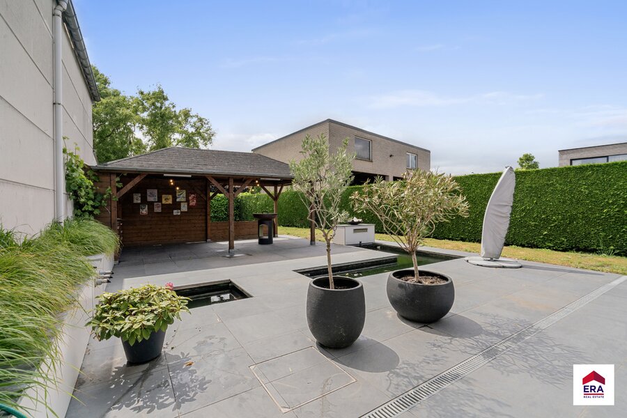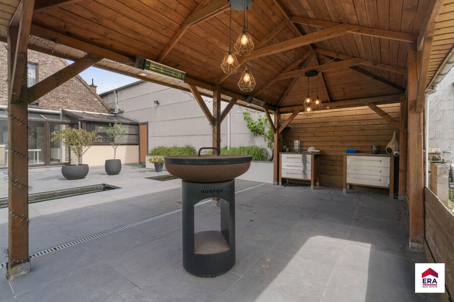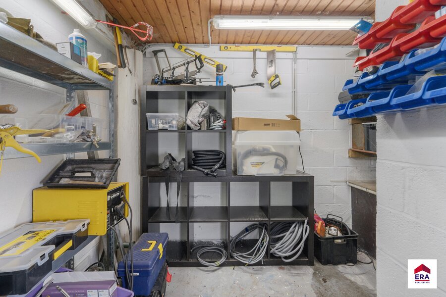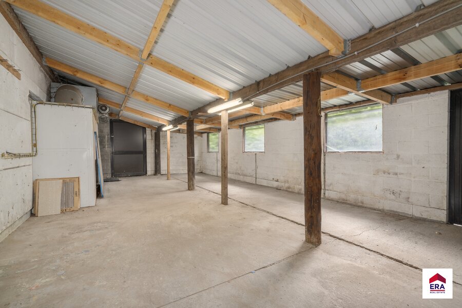 Uniek aan deze woning is de zeer ruim atelier met bureel van maar liefst 240 m² – ideaal voor wie een werkplaats, extra opslag of ruimte voor meerdere voertuigen nodig heeft.