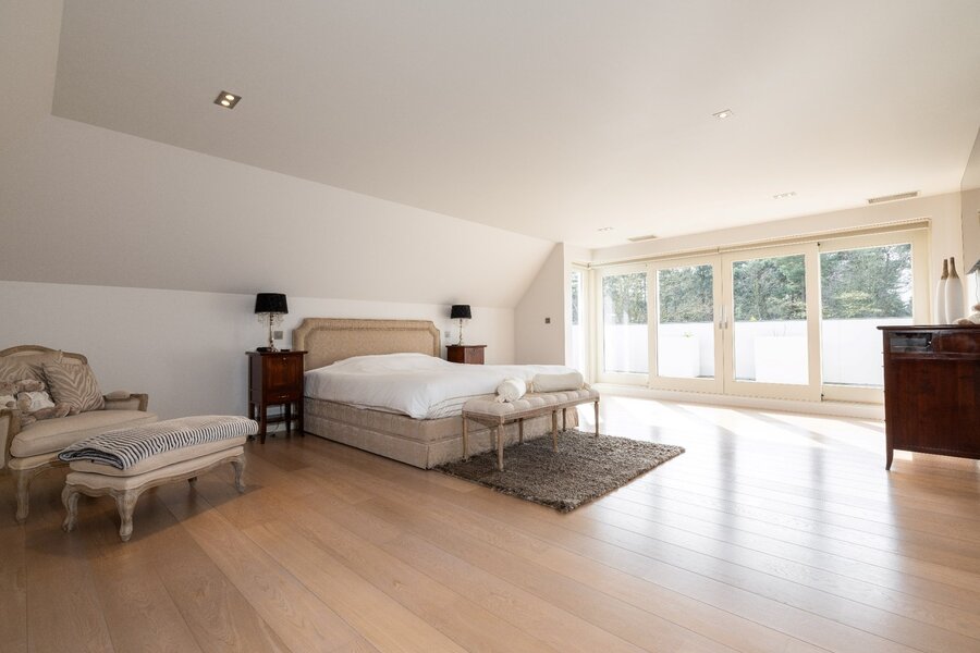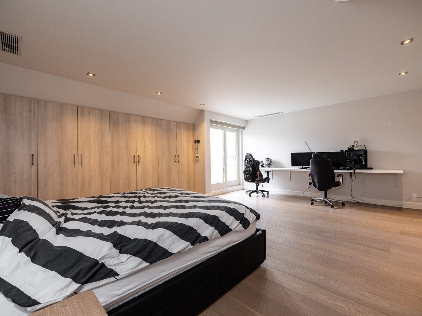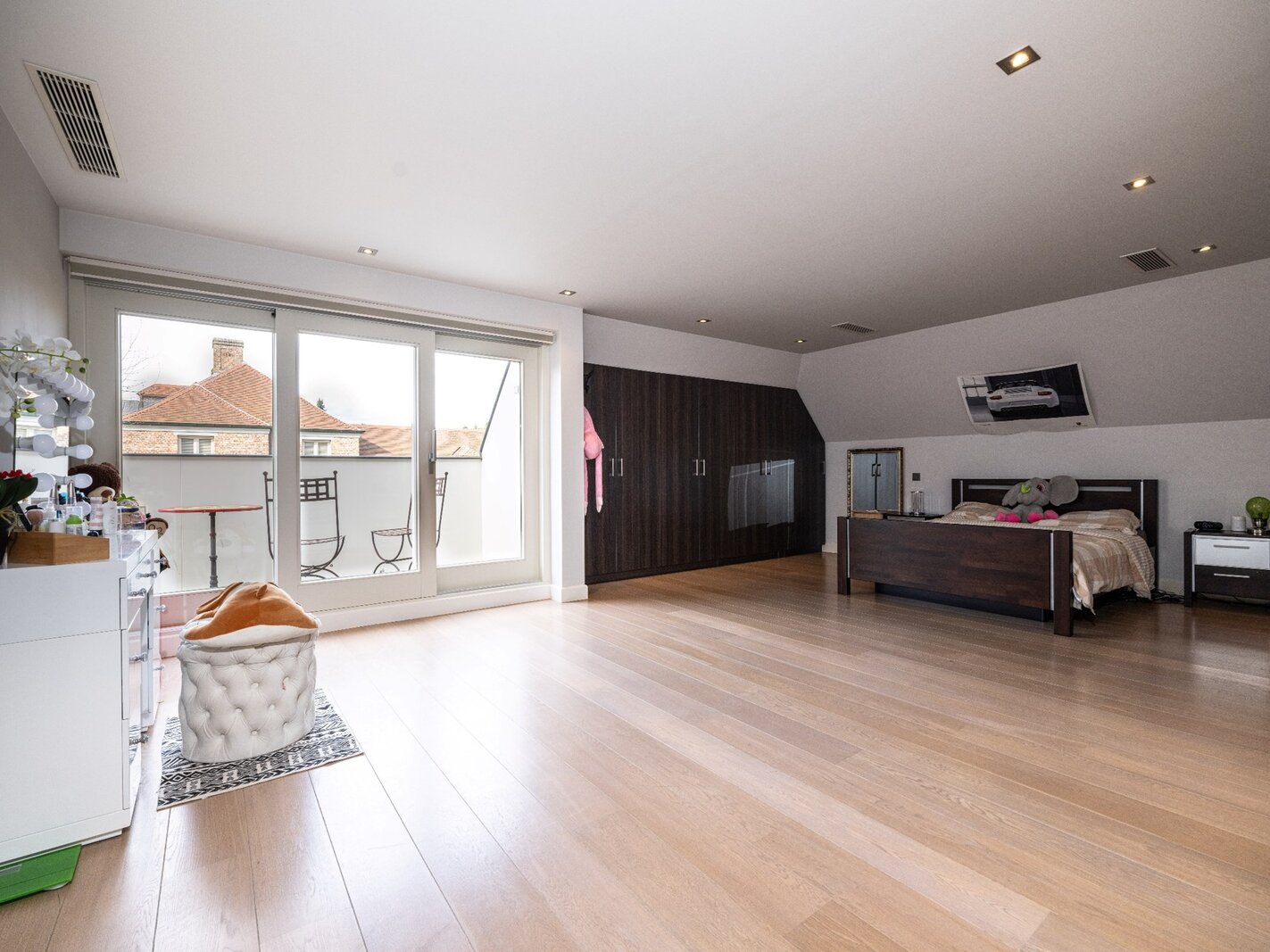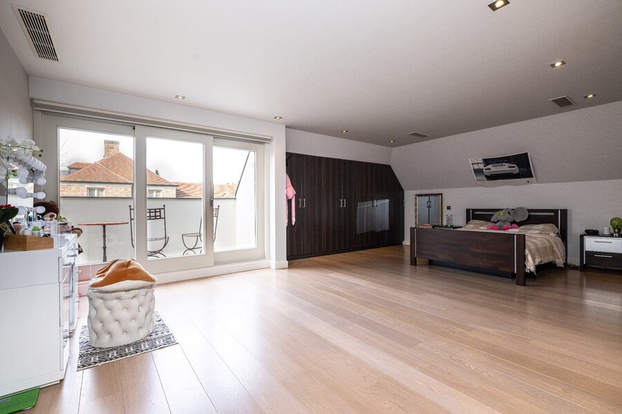 Op de verdieping treffen we de masterbedroom op parket met aansluitende dressing en volledig ingerichte badkamer voorzien van ligbad, douche (met ingebouwde zonnebank), toilet en dubbele wastafel. Via het schuifraam heeft u toegang tot een prachtig terras. Verder nog 3 bijkomende slaapkamers met ingemaakte kasten en waarvan 1 met aanpalende badkamer voorzien van toilet, lavabo en douche. Wasplaats/linnenkamer voorzien van aansluitingen voor wasmachine/droogkast en uitgietbak.
