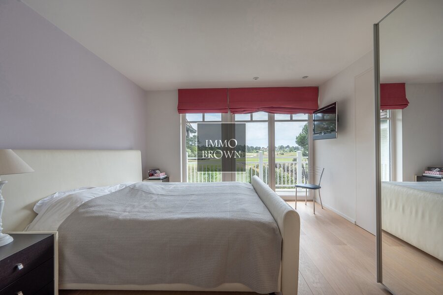 Op de eerste en tweede verdieping bevinden zich onder meer de master bedroom met privatief terras, uitkijkend op de green, en een ruime badkamer met ligbad en panoramisch golfzicht.