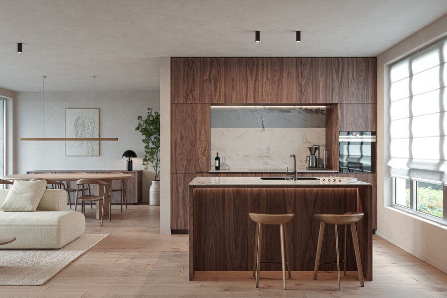 De appartementen worden gebouwd volgens het doorzon-principe. De kamerhoge raampartijen met brede gevels creëren een overvloed aan licht en ruimtelijkheid. De penthouse heeft een uitzonderlijke gevelbreedte van 24m. De verschillende terrassen aan de voor- en achterzijde bieden panoramische zichten op de stad.