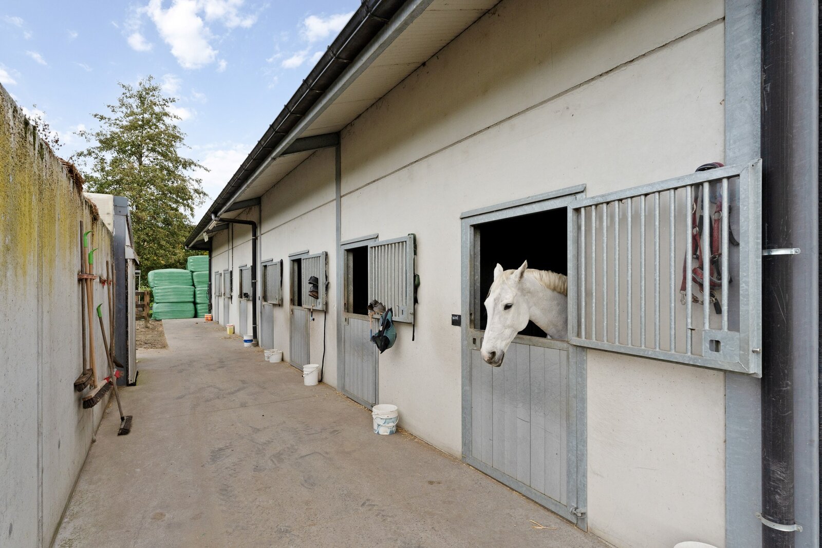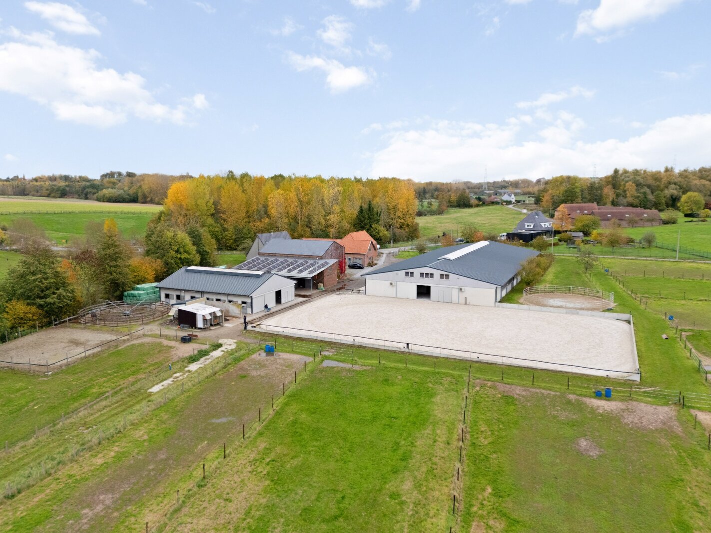 Dit uitgestrekte paardencomplex met maar liefst 35 boxen beschikt over een uitgebreid scala aan faciliteiten die voldoen aan de hoogste normen voor zowel fok- als sportpaarden.