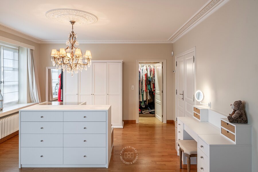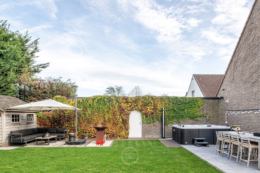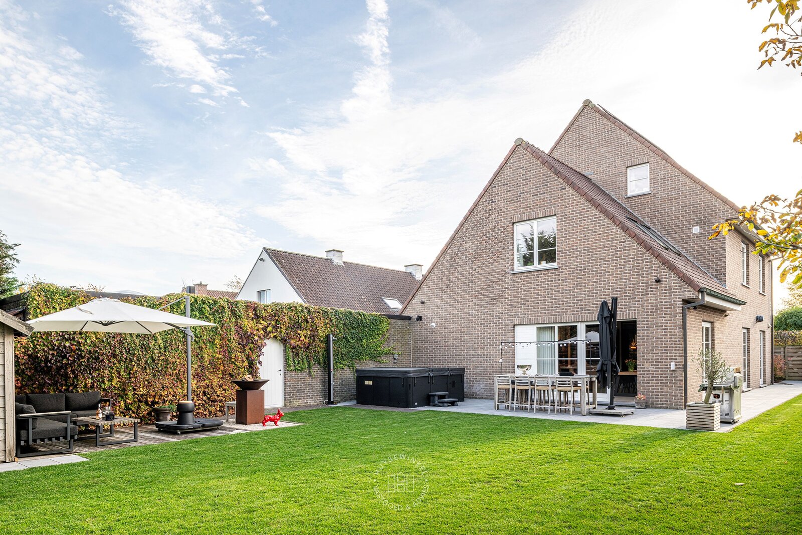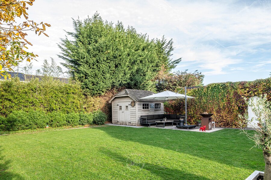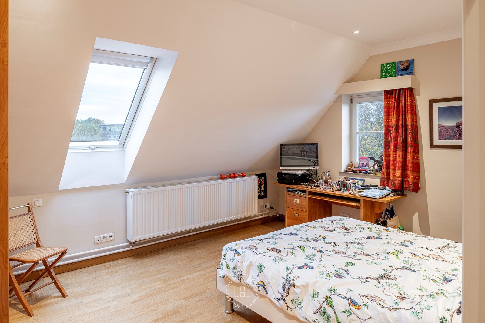 De woning zelf verrast door haar ruimtegevoel en indeling. De open keuken sluit rechtstreeks aan op het terras en de gezellige tuin, een ideale plek om te ontspannen. De lichtrijke leefruimte met gashaard creëert een warme sfeer, terwijl verschillende bergplaatsen en een praktisch bureau het wooncomfort verhogen. Op de eerste verdieping bevinden zich twee zeer ruime slaapkamers en een recent vernieuwde badkamer. De master beschikt over een inloopdressing en make-up gelegenheid. Op het eerste verdiep vinden we ook de zeer praktische wasplaats terug. De tweede verdieping biedt twee extra slaapkamers en een dressing, alsook een tweede badkamer, wat deze woning perfect maakt voor grote gezinnen, gasten of extra bureauruimte. Daarnaast beschikt de woning over een garage met plaats voor twee wagens, aangevuld met diverse opbergmogelijkheden.