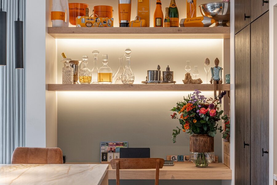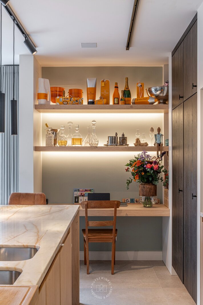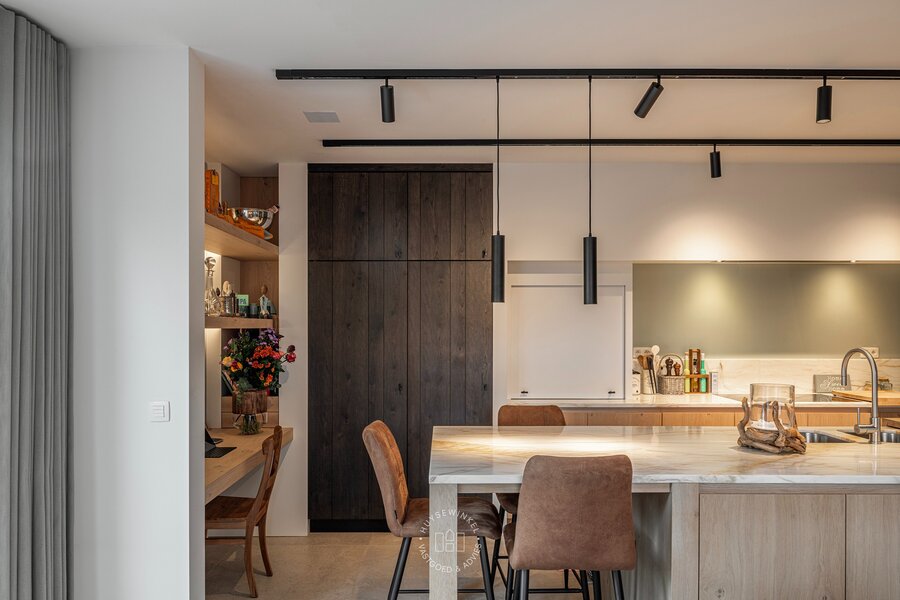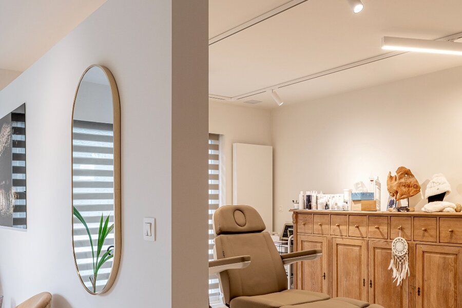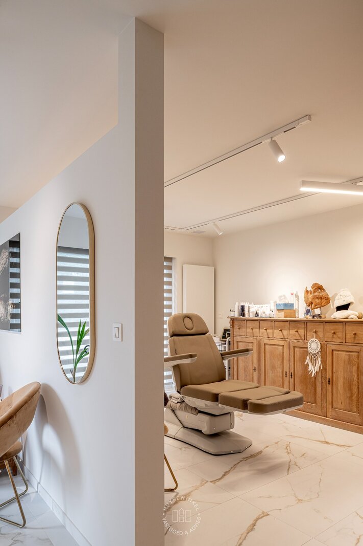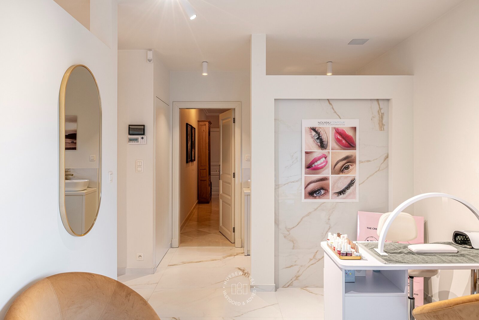 Vooraan in de woning bevindt zich een volledig ingerichte praktijkruimte, bestaande uit twee afzonderlijke delen, ideaal voor consultaties, burelen of een vrij beroep. Daarnaast is er een kitchenette met ruime berging op de eerste verdieping, wat deze ruimte bijzonder functioneel maakt. De ruime parkeergelegenheid voor de deur en de aparte ingang zorgt voor een vlotte ontvangst van klanten of patiënten.