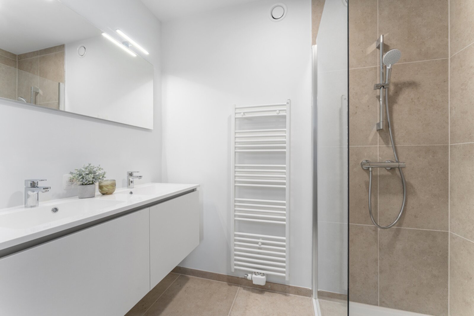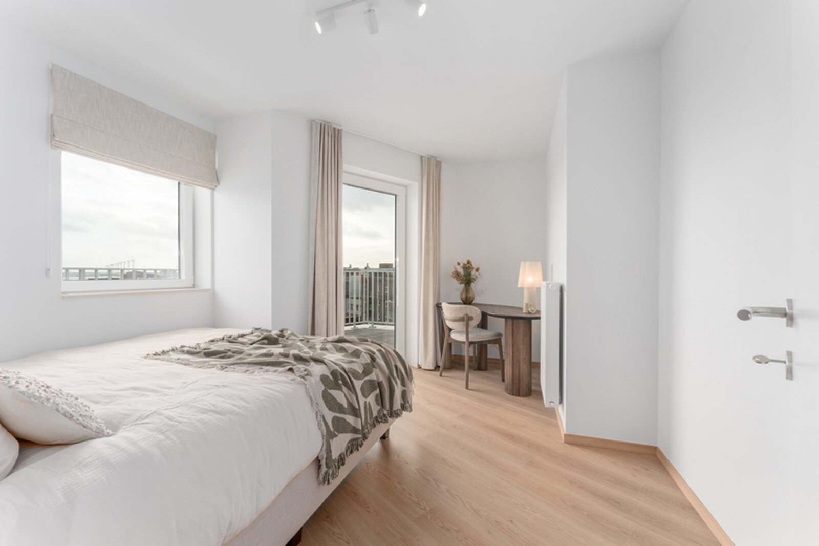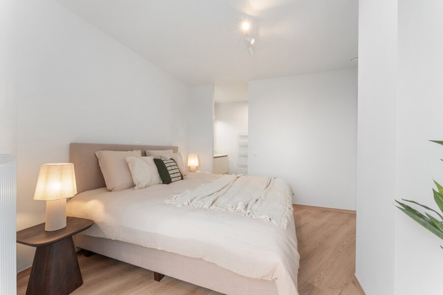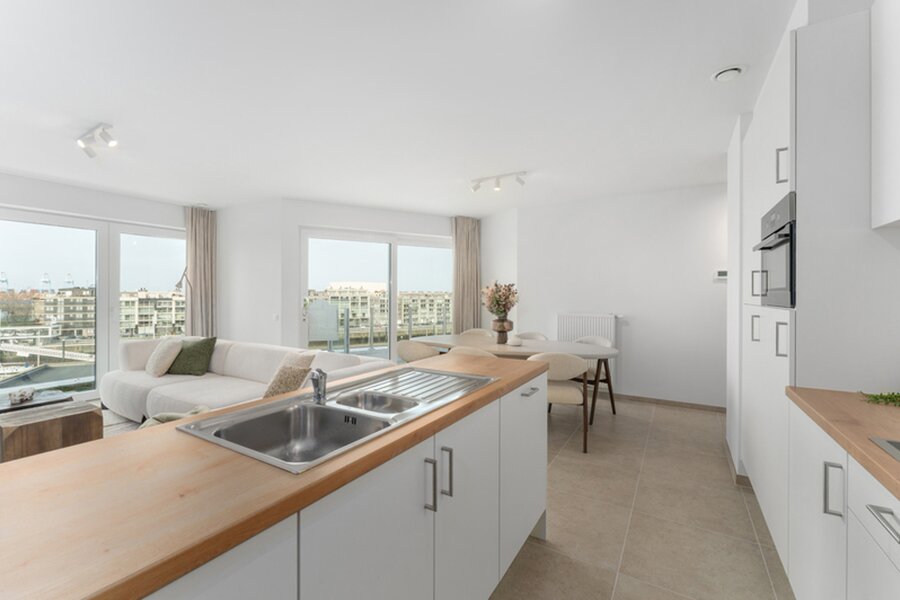 De leefruimte is lichtrijk en sluit naadloos aan op de open, ingerichte keuken, die voorzien is van alle hedendaagse toestellen. De drie slaapkamers zijn praktisch ingedeeld en bieden tal van mogelijkheden, zowel voor een gezin als voor wie extra ruimte wenst voor een bureau of logeerkamer. Verder beschikt het appartement over twee modern afgewerkte badkamers die zorgen voor extra comfort en privacy. Dankzij de naadloze afwerking en de onmiddellijke beschikbaarheid kan je hier meteen zorgeloos intrekken.