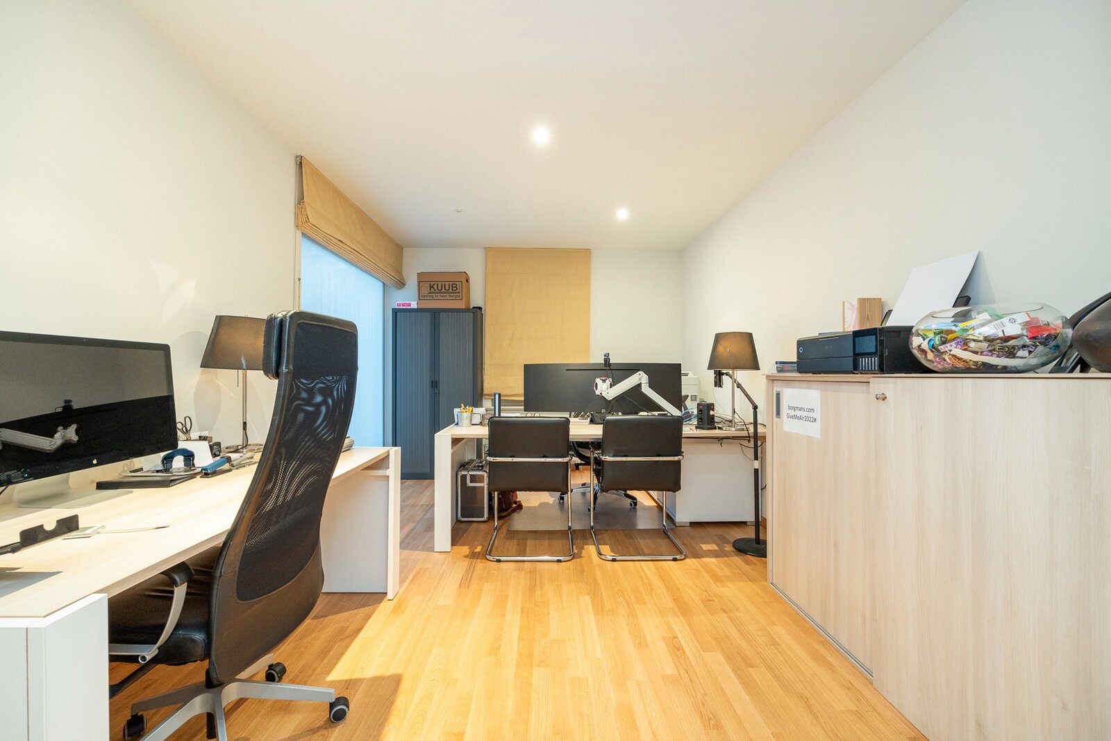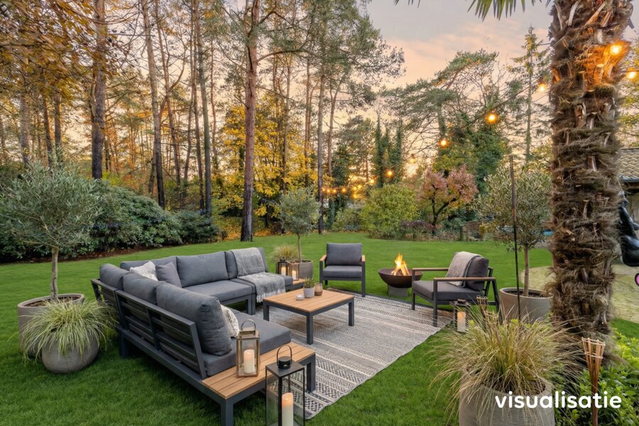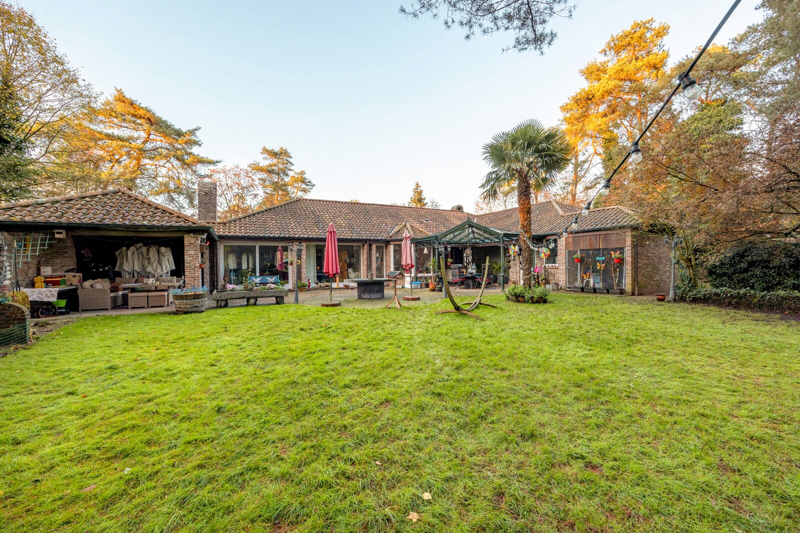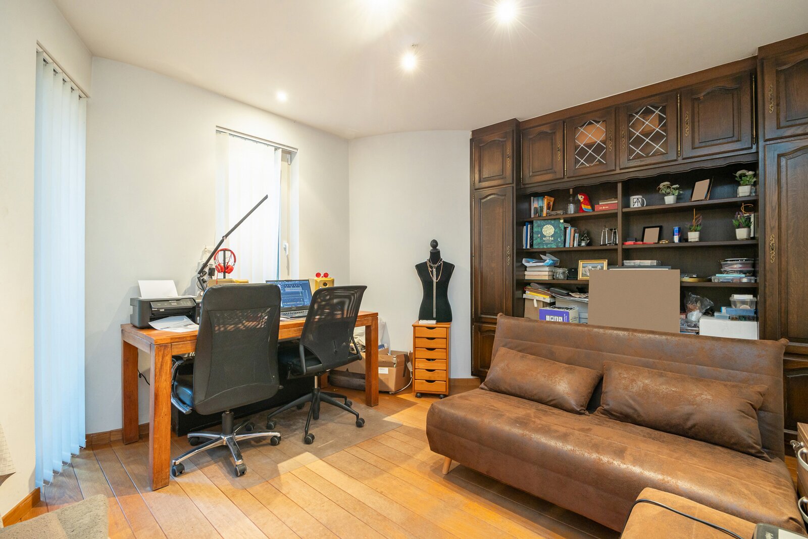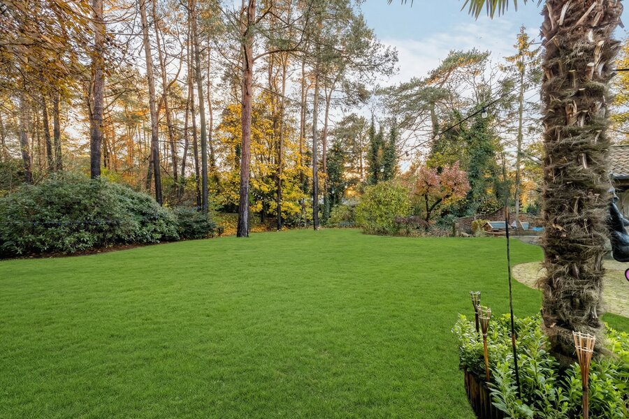 Hoofdslaapkamer met dressing en complete badkamer ensuite. Zeer grote dubbele garage met zolder en grote berging. Buiten een grote tuin met open en overdekte terrassen (één met haard). Tuinberging.
