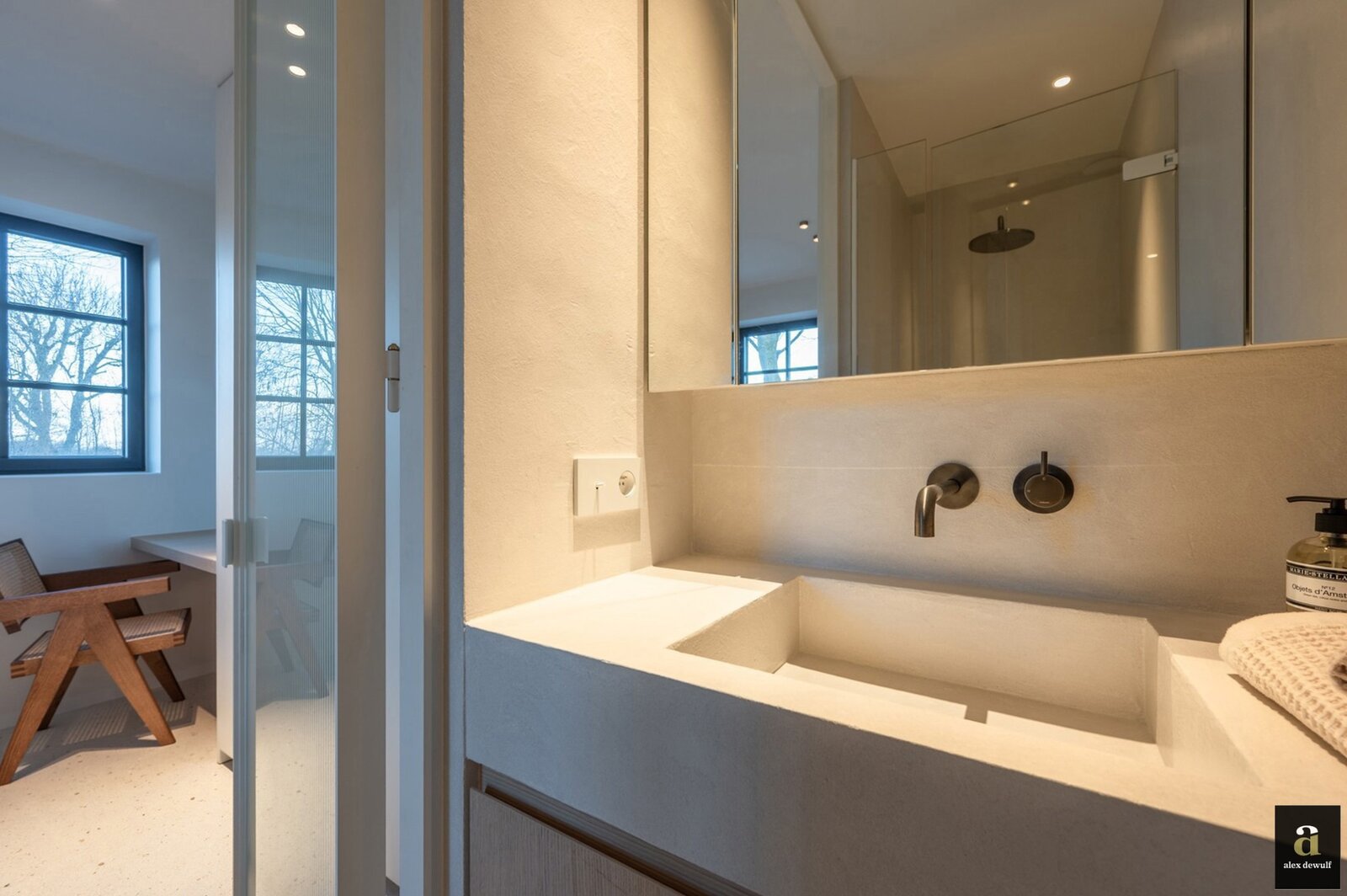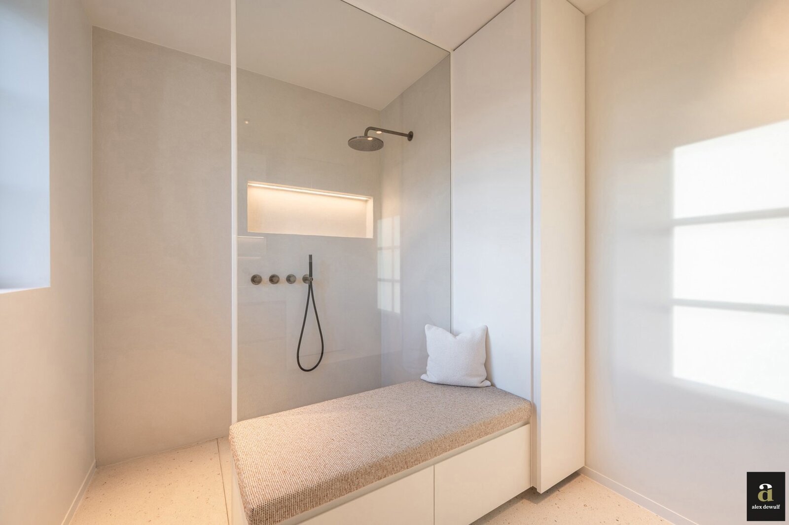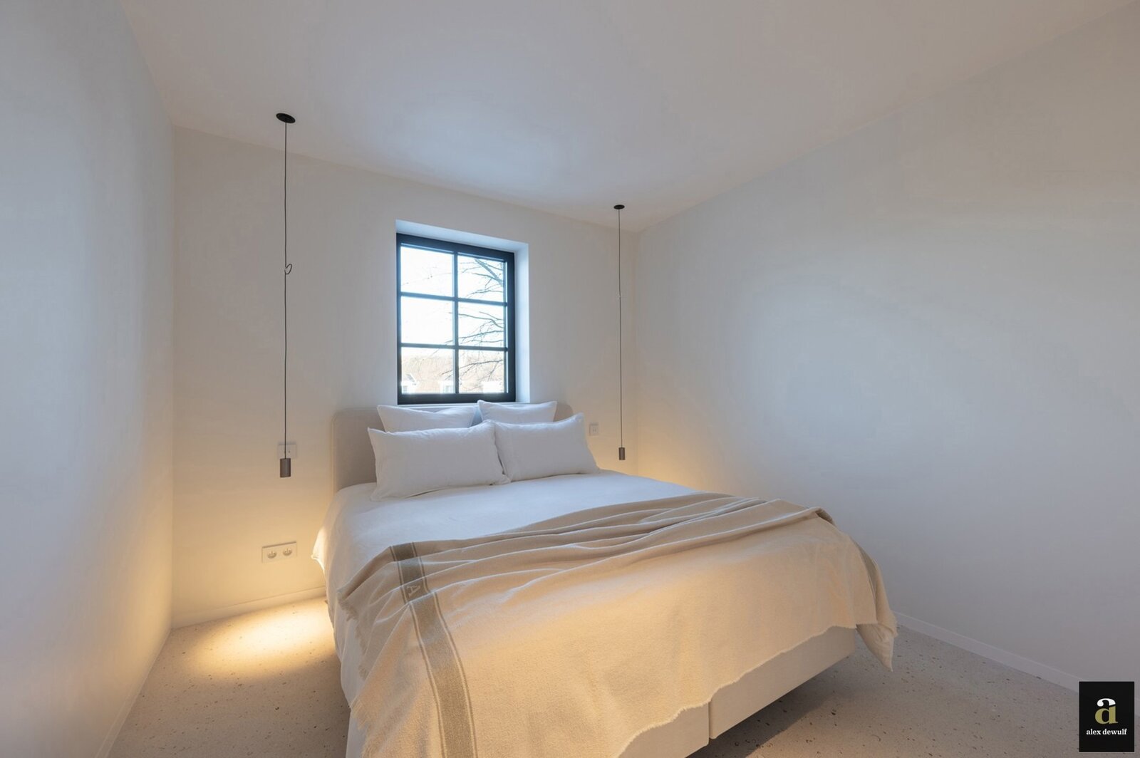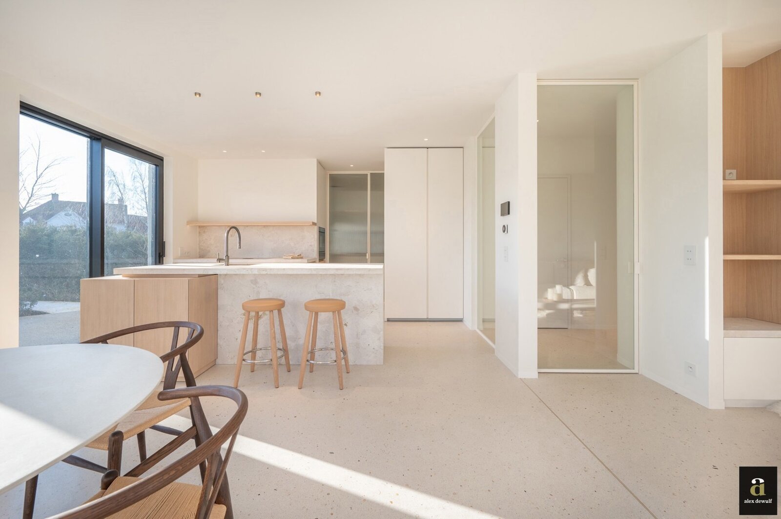 Instapklare nieuwbouwkoppelvilla met vijf slaapkamers te Knokke-Heist aan de polders. Indeling: inkomhal met vestiaire en gastentoilet. De ruime, lichtrijke woon- en eetkamer geeft uit op het zonovergoten terras en de prachtige aangelegde tuin. De moderne open keuken met kookeiland in natuursteen en terrazzo is volledig uitgerust met hoogwaardige V-Zug-toestellen. Praktische bijkeuken/wasruimte. Op de eerste verdieping bevindt zich de master bedroom met dressing en ensuite badkamer voorzien van dubbele lavabo, bad, douche en apart toilet. Daarnaast zijn er twee volwaardige slaapkamers met ingemaakte kasten en aansluitende douchekamer.
