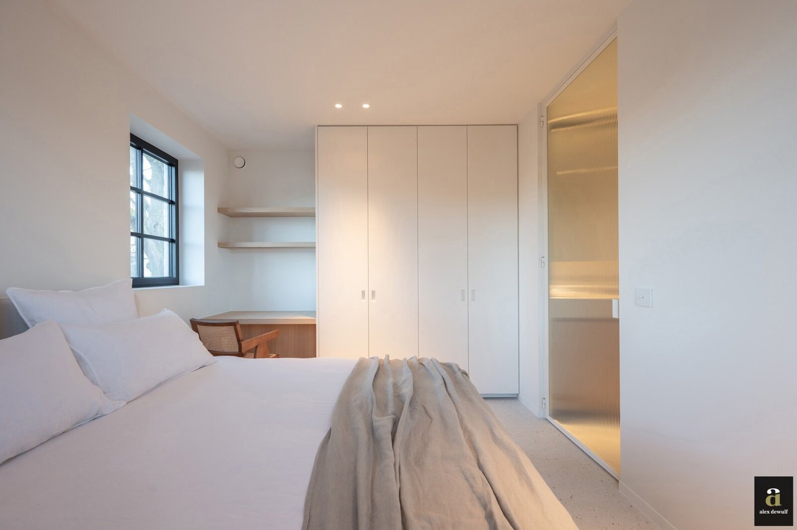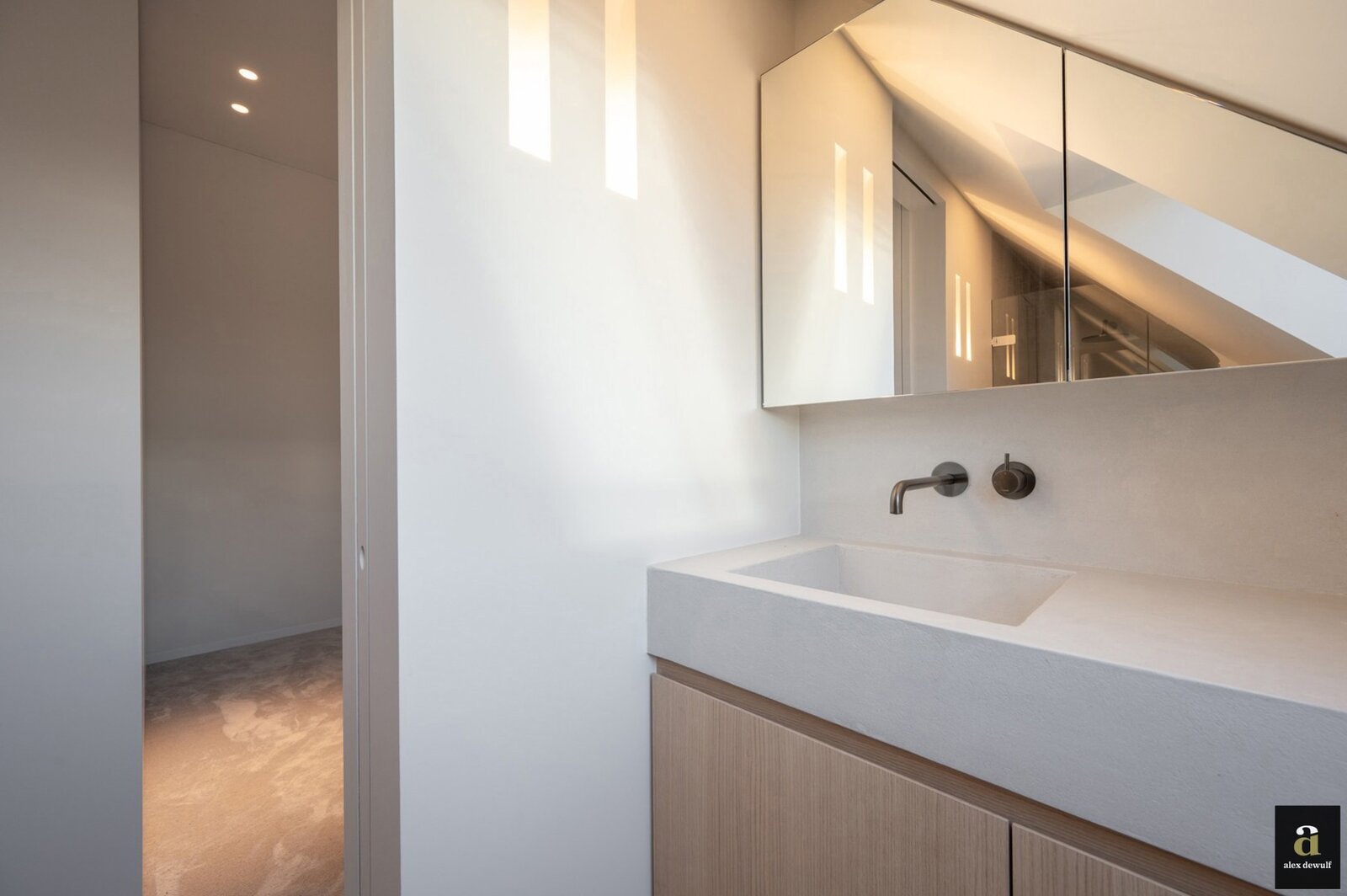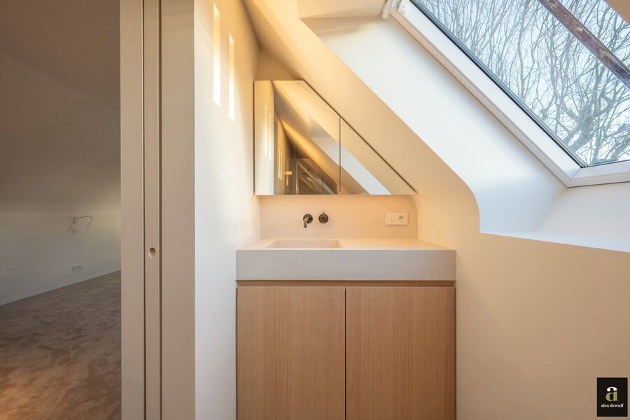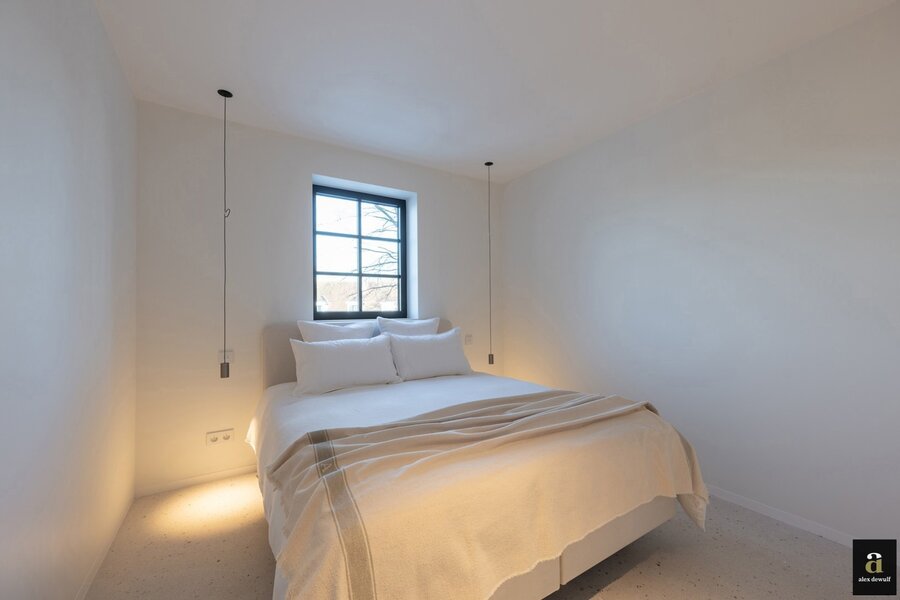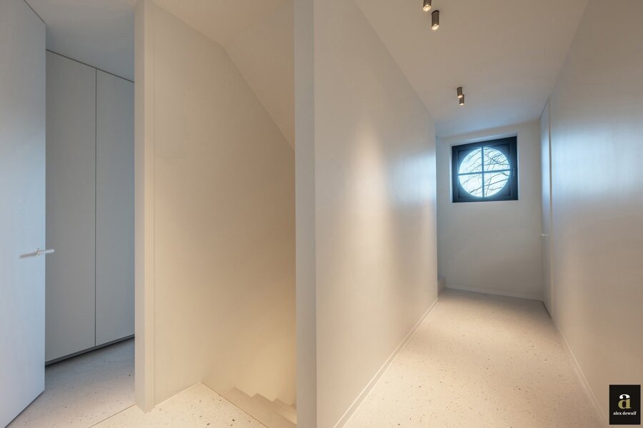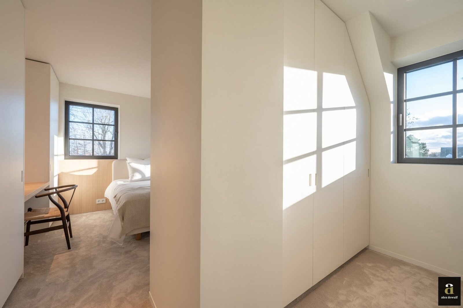 De tweede verdieping omvat een vierde slaapkamer met bureau, ingemaakte kasten en eigen douchekamer, evenals een polyvalente ruimte die kan worden ingericht als vijfde slaapkamer, hobbyruimte,.... De woning beschikt over een inpandige garage en twee parkeerplaatsen. De villa werd afgewerkt met hoogwaardige materialen. Deze prachtige nieuwbouw koppelvilla wordt verkocht onder registratierechten.