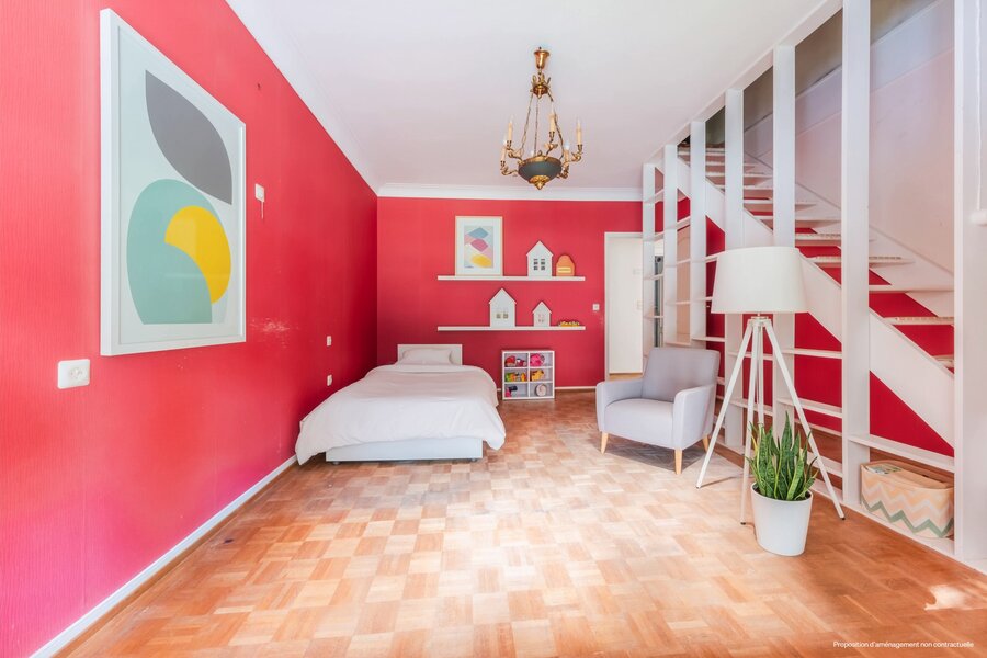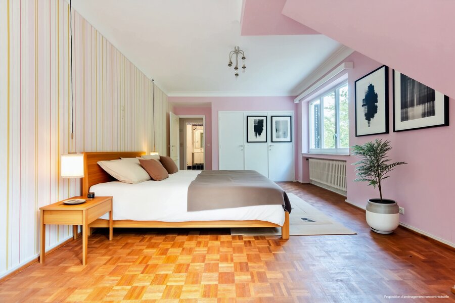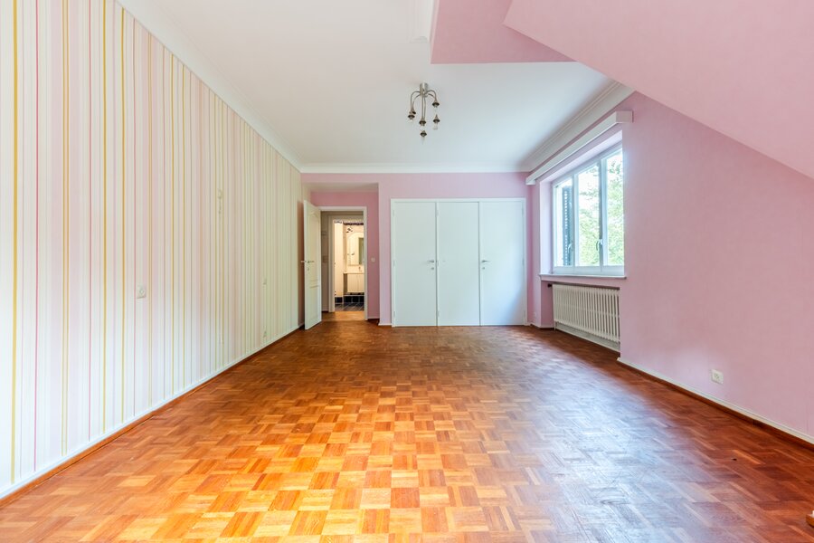 Op de eerste verdieping zijn er vijf slaapkamers, waaronder een ouderlijke suite met dressing, 3 badkamers en toegang tot de grote zolder die kan worden ingericht, wat een mooi uitbreidingspotentieel biedt.