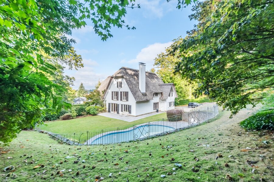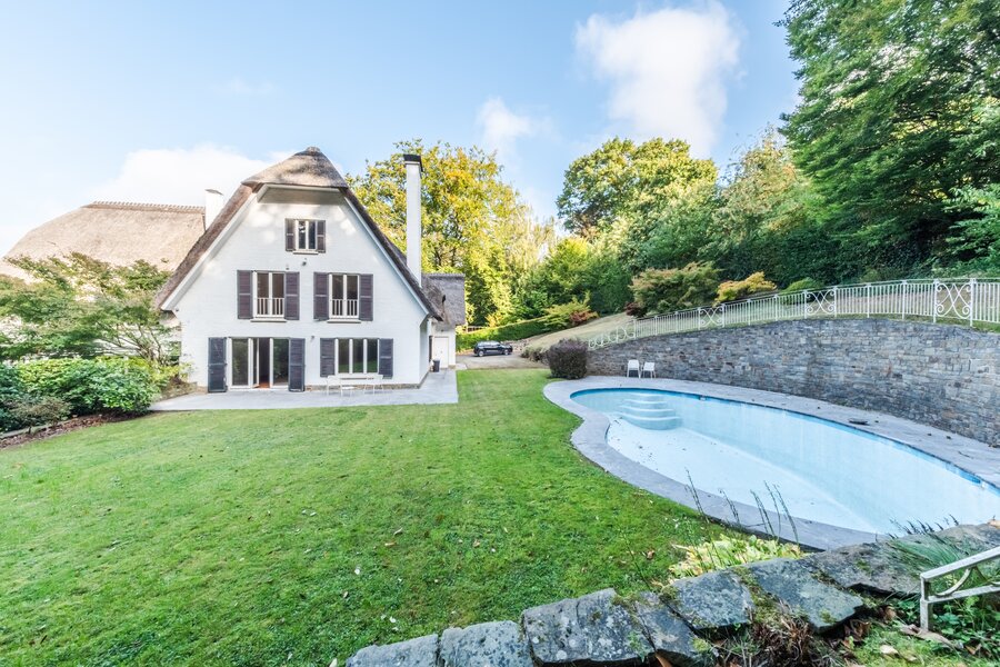 De goed georiënteerde tuin met zwembad, zonder inkijk en met vrij uitzicht op Sint-Pieters-Woluwe, belooft heerlijke ontspanningsmomenten.