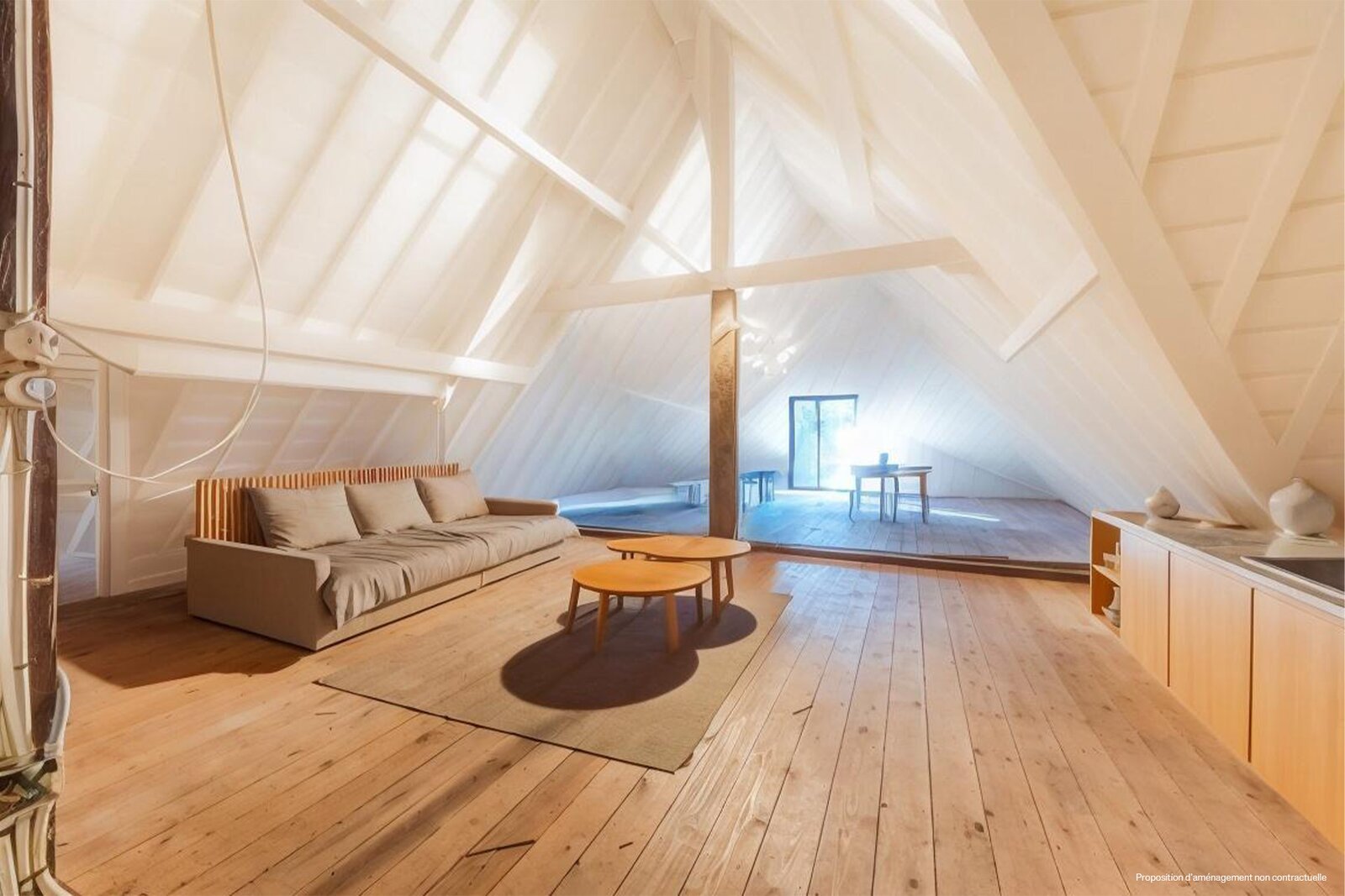 Dit huis met 3 gevels en een uniek karakter met zijn rieten dak biedt ruime volumes.