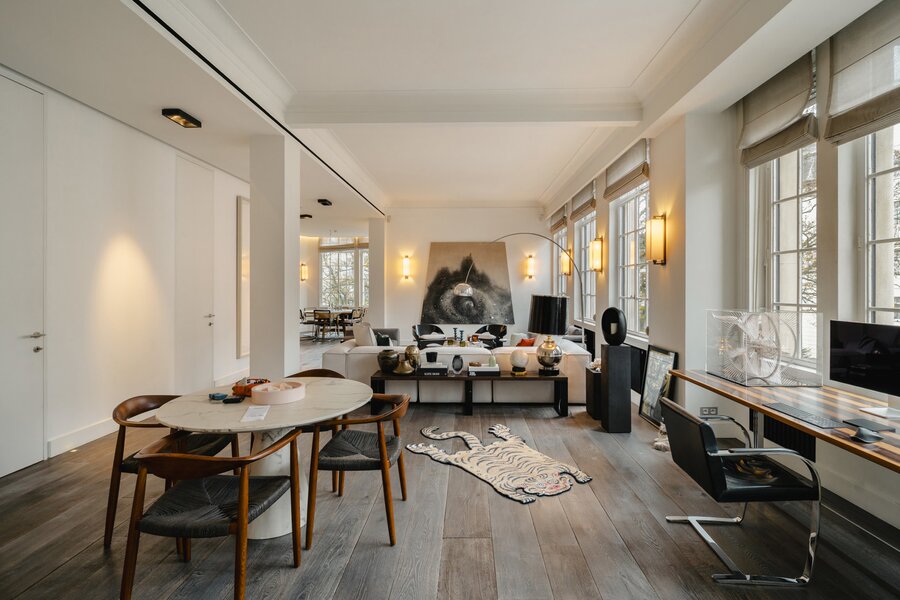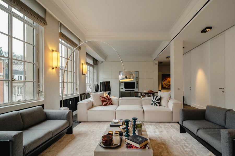 Op een steenworp afstand van het Ter Kamerenbos en het openbaar vervoer, bevindt zich dit loft-appartement met een bruto vloeroppervlakte van 225 m² (EPC) op de tweede verdieping van een art-decogebouw.