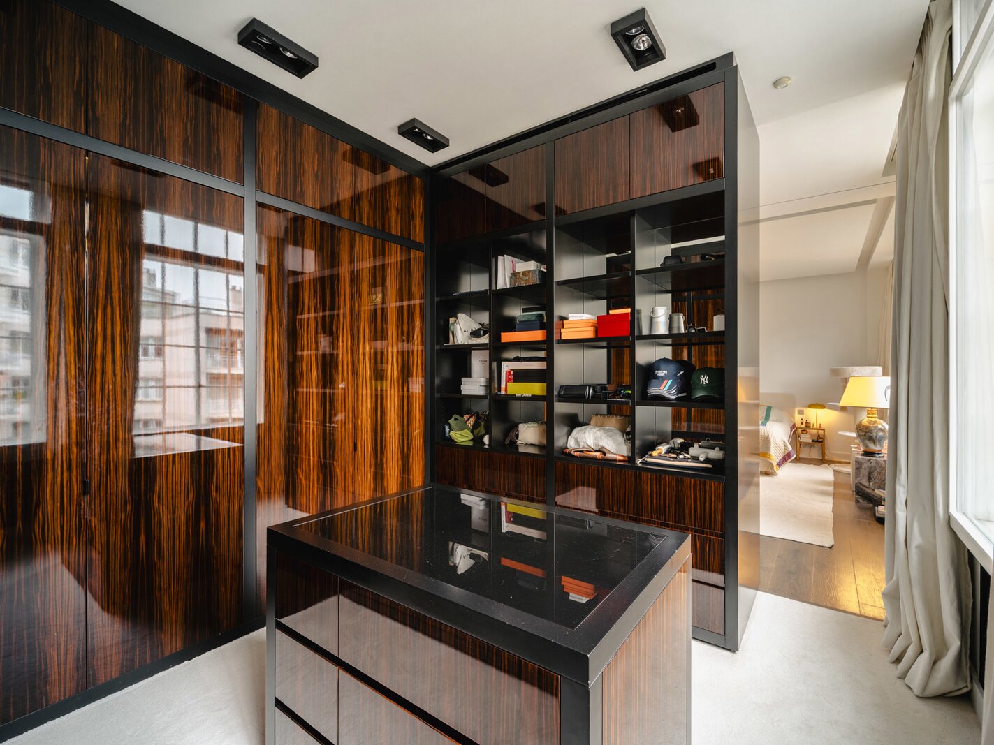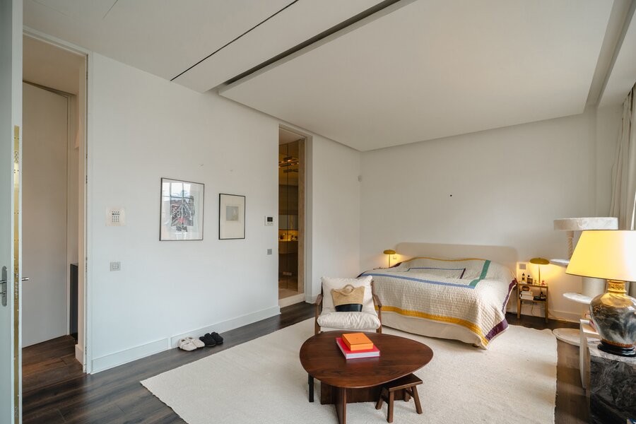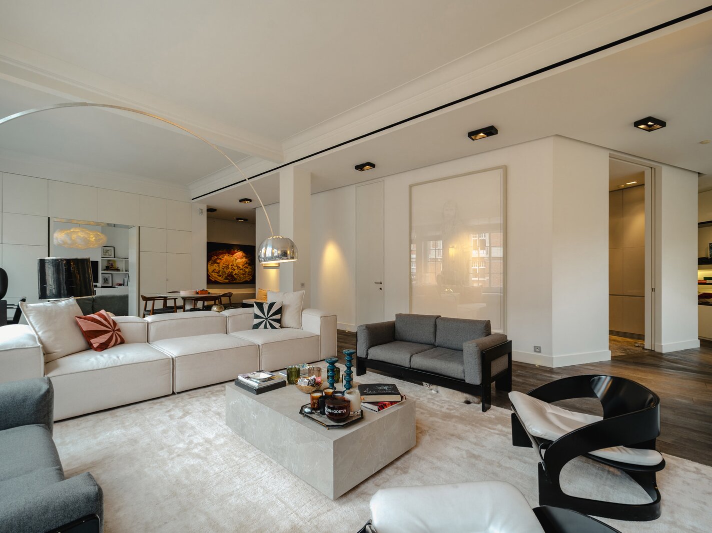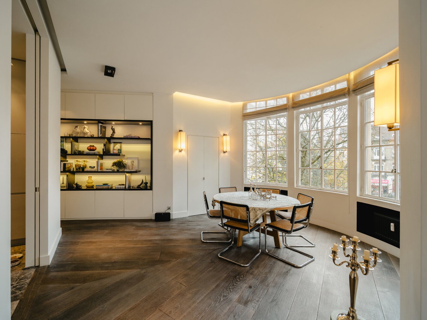 Dit appartement is volledig gerenoveerd met hoogwaardige materialen en biedt ruime ontvangstruimtes met hoge plafonds. Het beschikt over een hal met garderobe, een lichte woonkamer, een eethoek en een aparte, volledig uitgeruste, speciaal ontworpen Gaggenau-keuken. De hoofdslaapkamer beschikt over een volledig marmeren badkamer en een aparte dubbele kleedkamer. Akoestische isolatie zorgt voor een rustige en vredige omgeving. Een tweede slaapkamer/kantoor/tv-kamer met open haard grenst aan de woonkamer en er is ook een aparte doucheruimte.