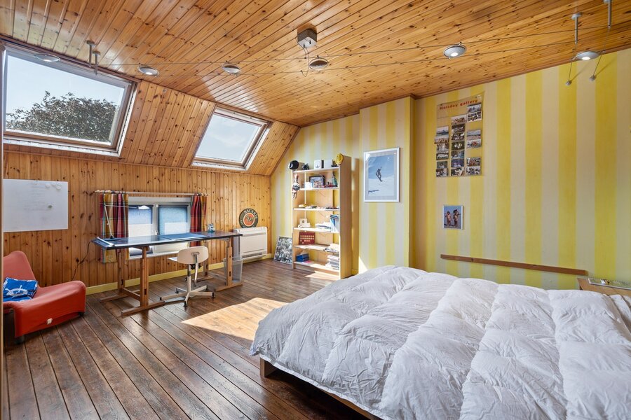 Op de verdiepingen vinden we de slaapvertrekken. De eerste verdieping bestaat uit vier slaapkamers, een badkamer en een douchekamer; de tweede verdieping telt nog twee slaapkamers en een badkamer. Verder is er op dit verdiep nog een praktische berging/zolderruimte die men verder kan gaan afwerken, indien gewenst. De zolder op de derde verdieping is bereikbaar via een zolderluik. Op het tussenverdiep tussen het gelijkvloers en de eerste verdieping vinden we een kleine, polyvalent gebruikte ruimte met achtergelegen een kamer met douchecabine en ingebouwde sauna.
