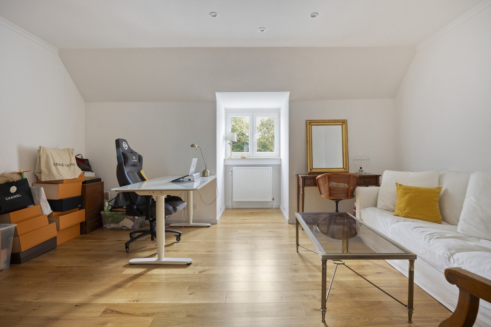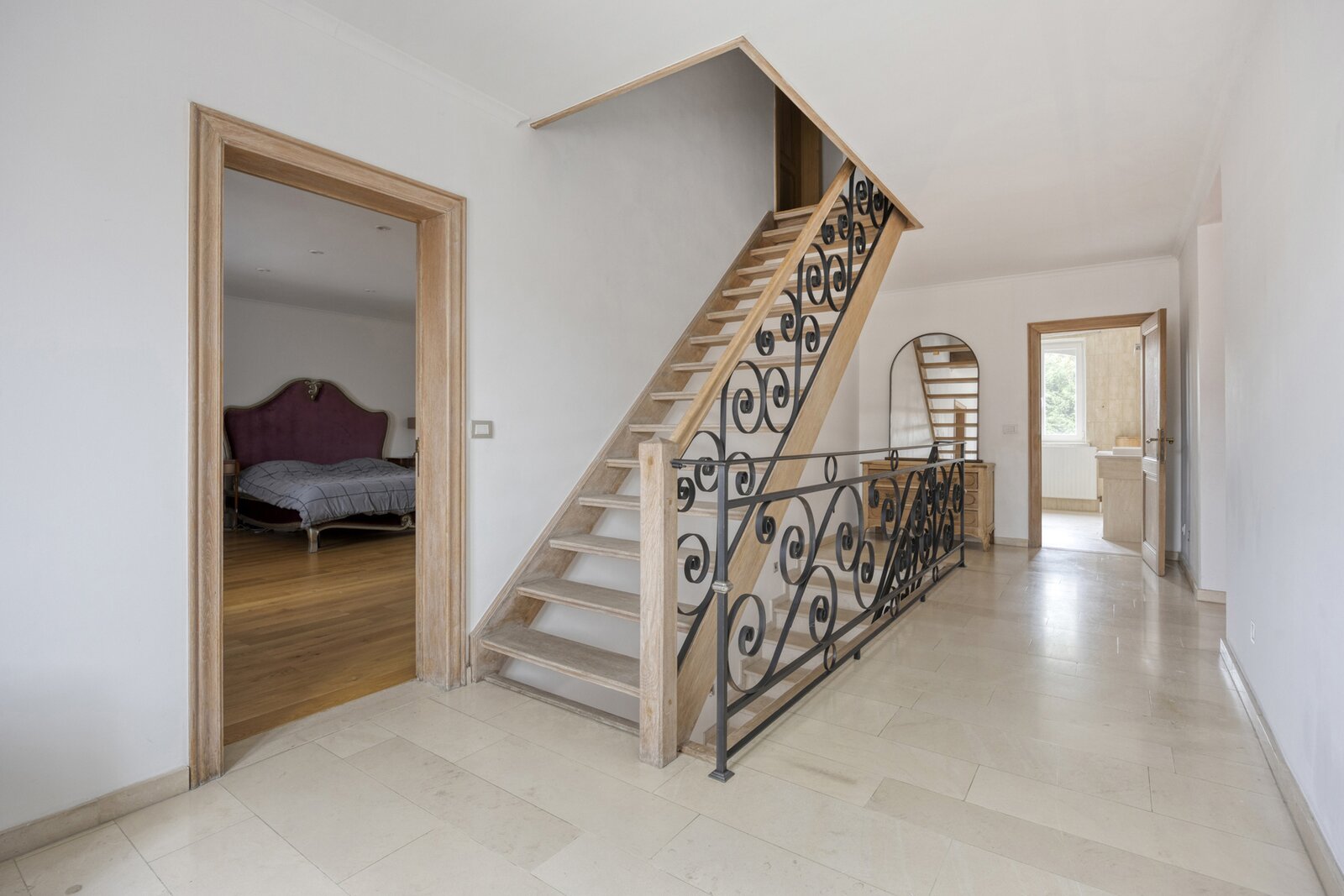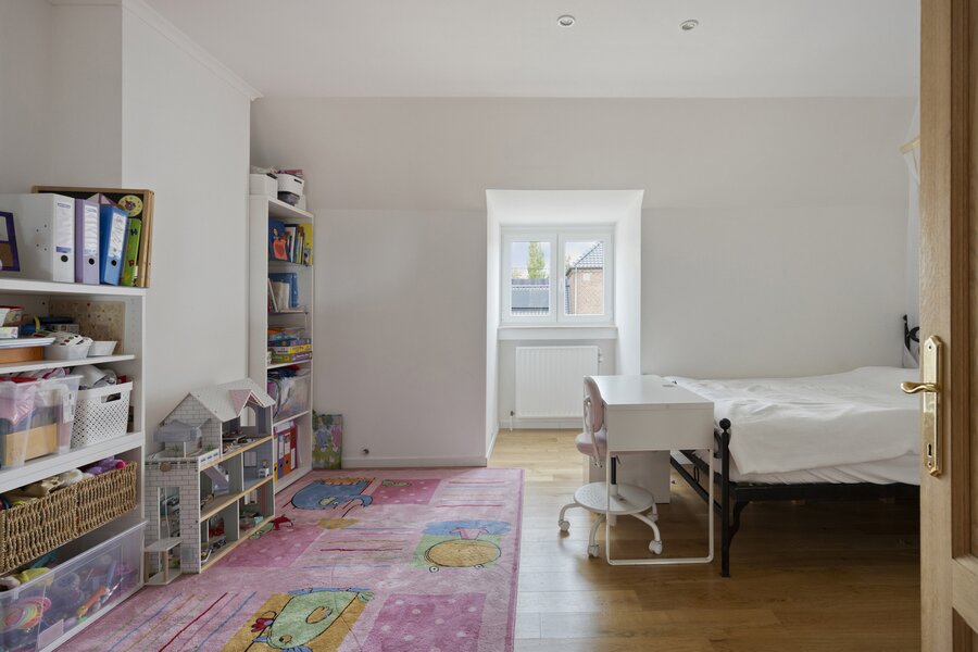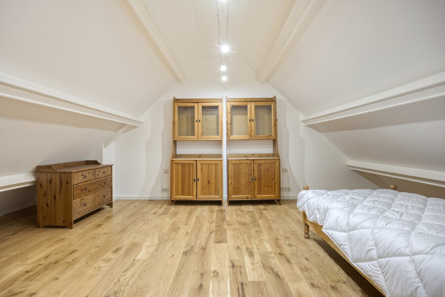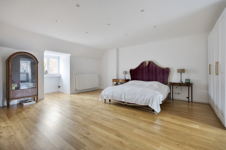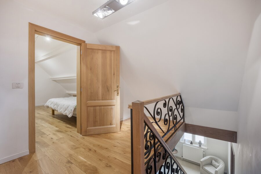Op de eerste verdieping brengt de ruime nachthal u naar vier grote slaapkamers en drie luxueus afgewerkte badkamers. De zolderverdieping biedt nog plaats voor drie extra kamers (mits plaatsing Veluxen).