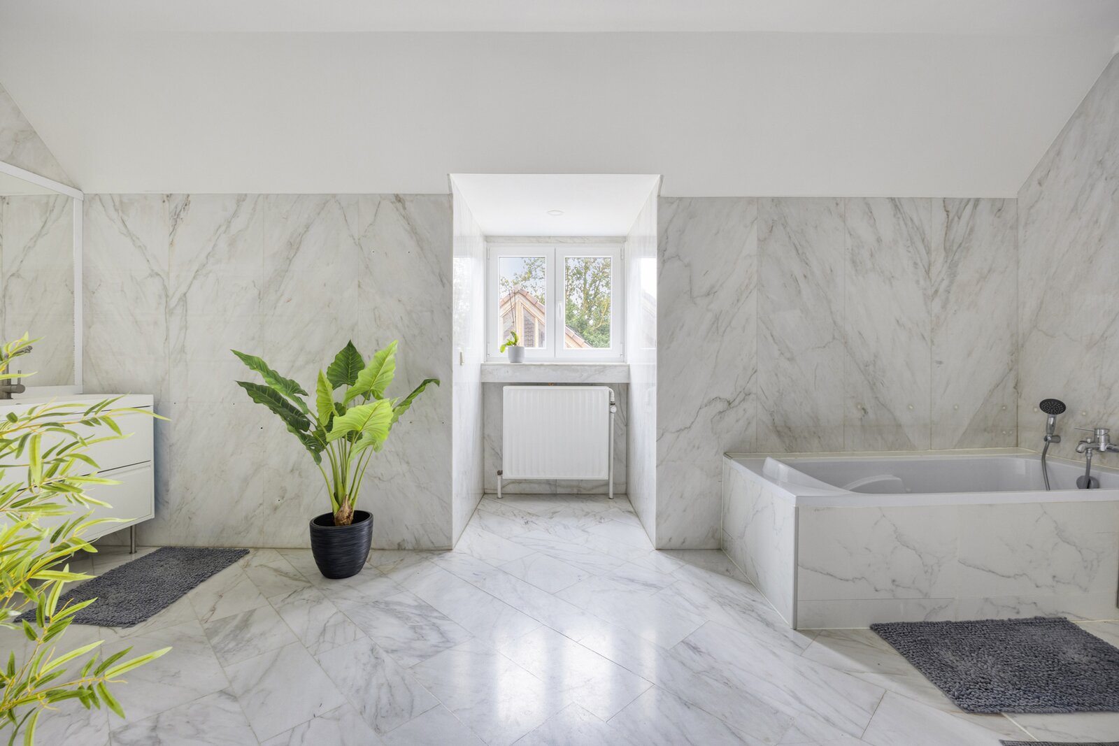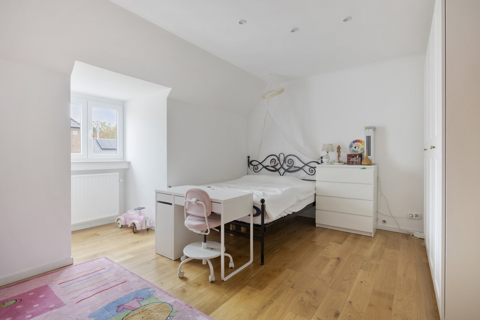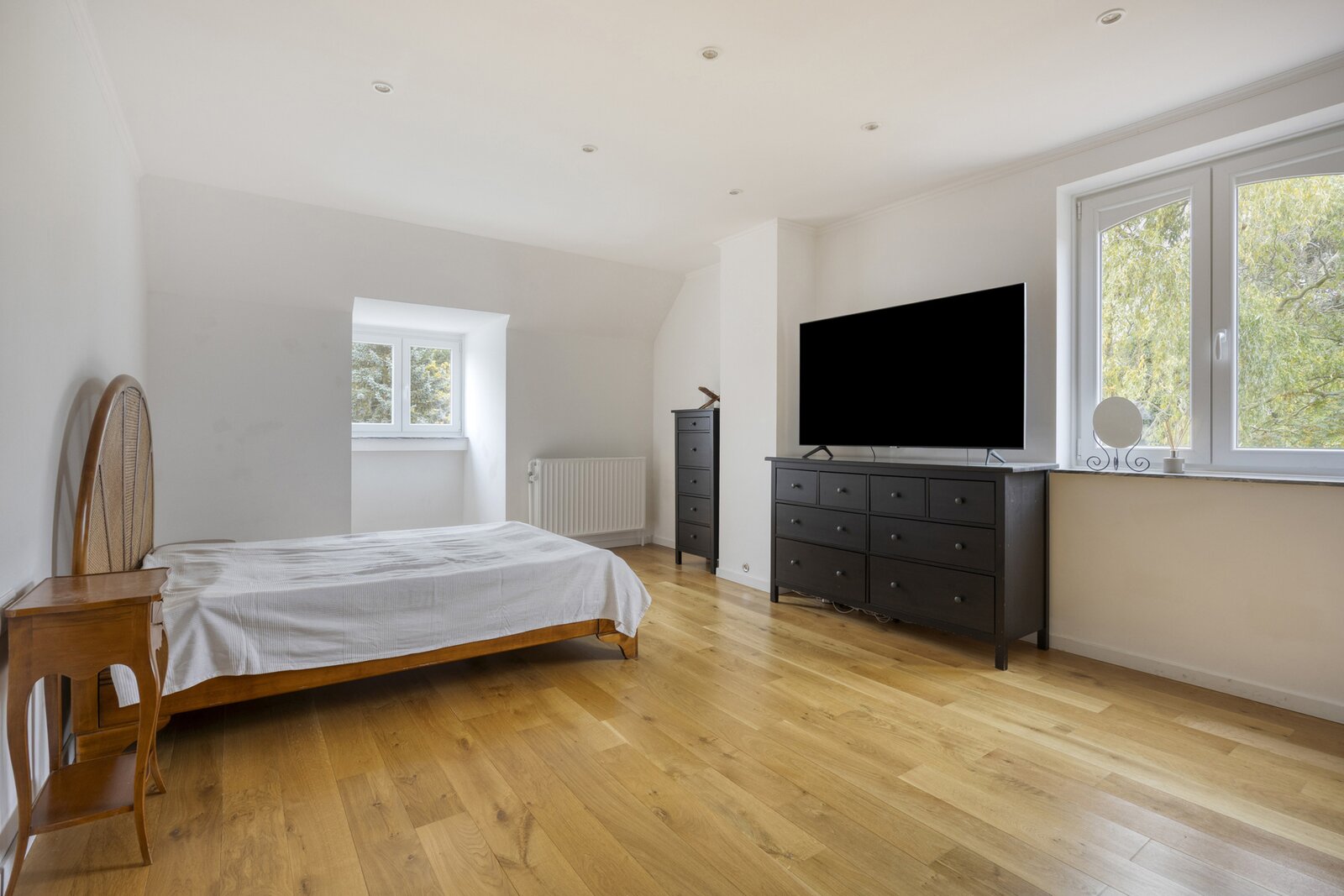 Op de eerste verdieping brengt de ruime nachthal u naar vier grote slaapkamers en drie luxueus afgewerkte badkamers. De zolderverdieping biedt nog plaats voor drie extra kamers (mits plaatsing Veluxen).