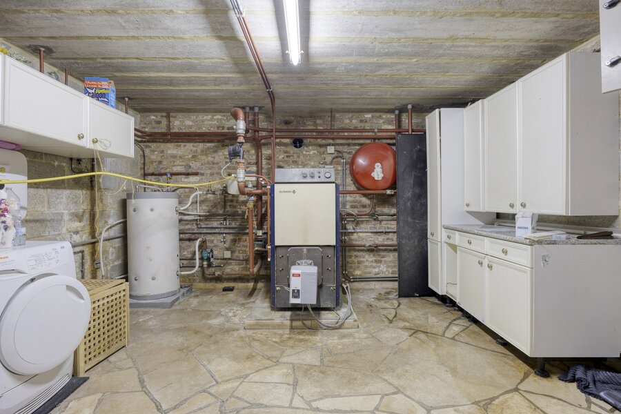De kelder herbergt naast de technische ruimte ook een wijnkelder en een extra ontspanningsruimte (verwarmd).