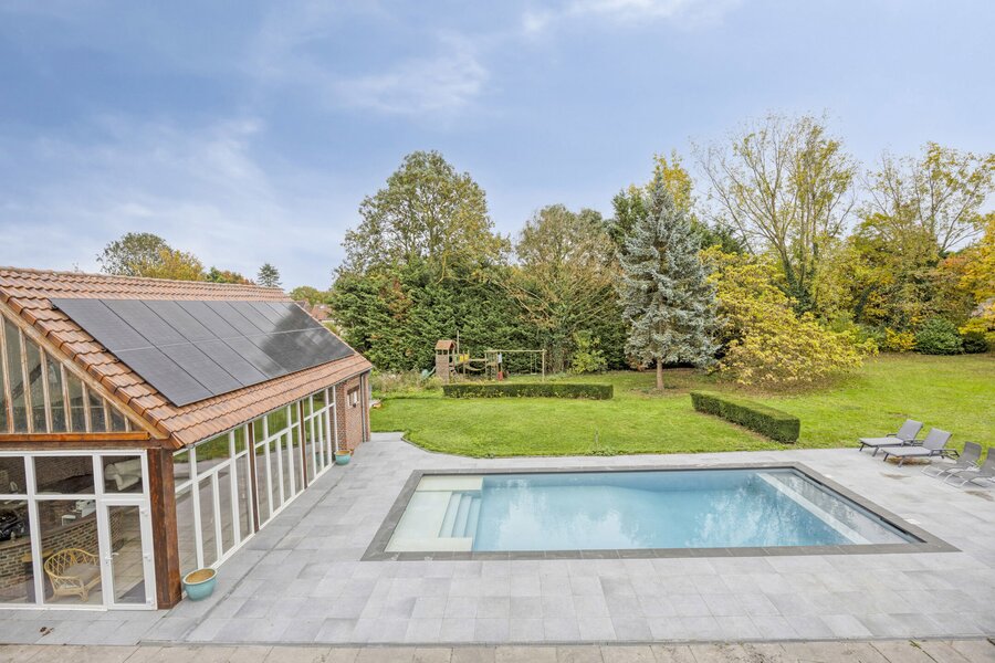 Achter een stijlvol historisch poortgebouw schuilt deze prachtige villa, een plek waar charme en comfort elkaar moeiteloos vinden. De indrukwekkende bewoonbare oppervlakte van 455 m², het verwarmde zwembad, het poolhouse en de royale tuin maken van deze woning een uitzonderlijk geheel voor wie houdt van ruimte, klasse en rust.