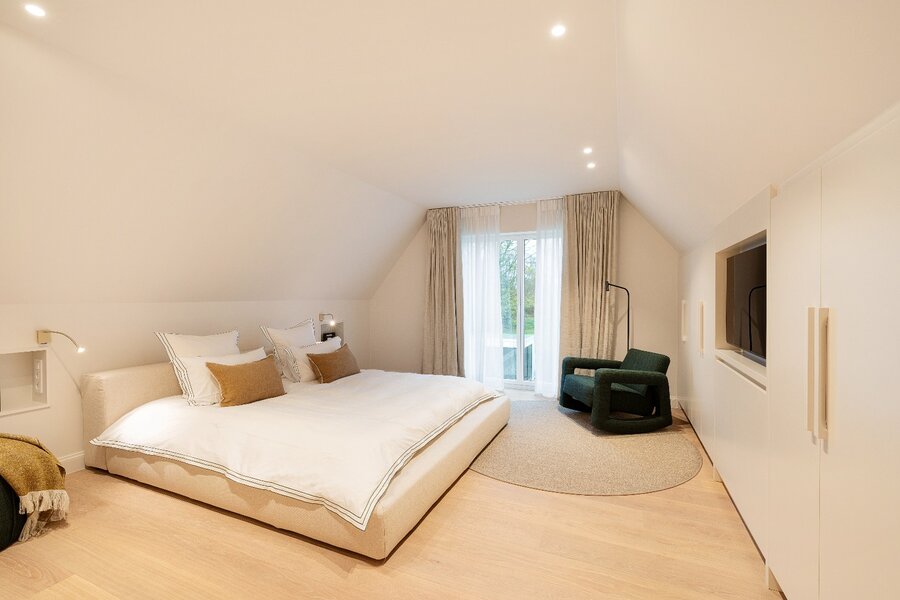 Op de eerste verdieping bevinden zich vier ruime slaapkamers en drie stijlvolle badkamers, waaronder een royale masterbedroom met dressing en luxueuze badkamer.