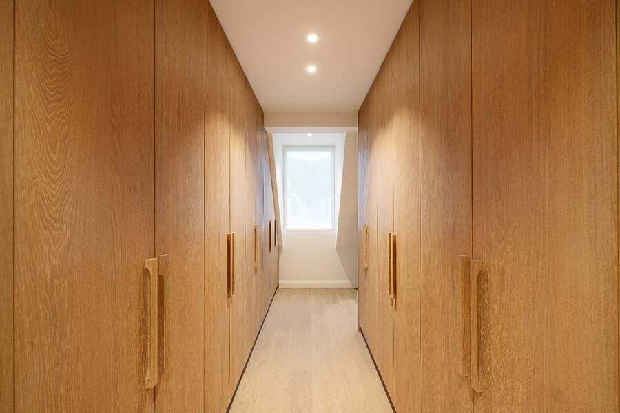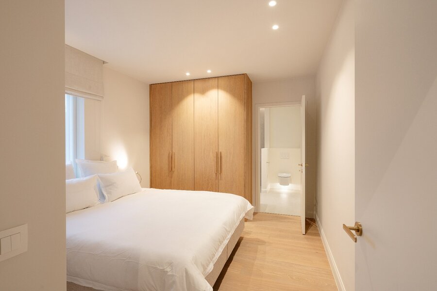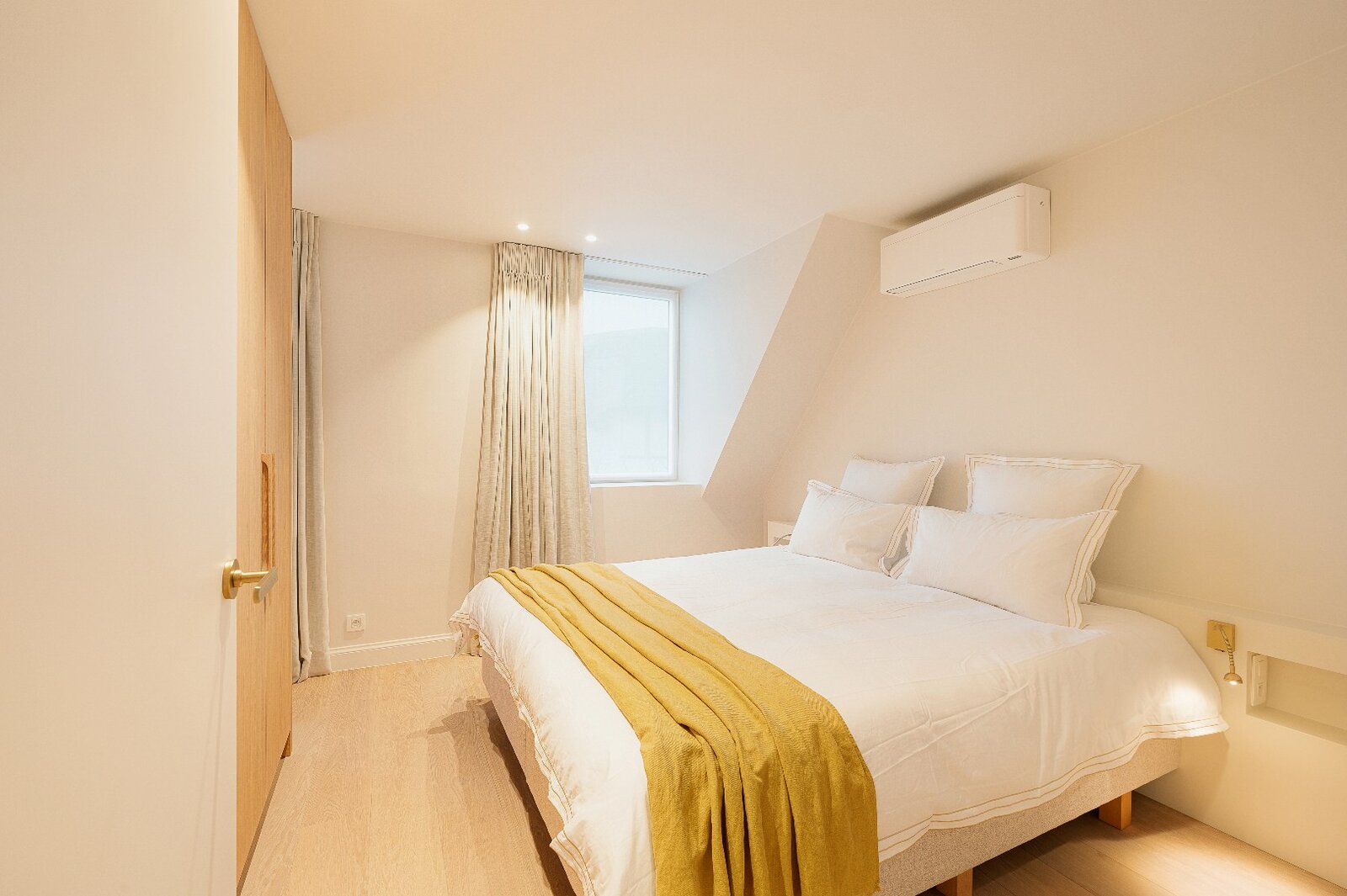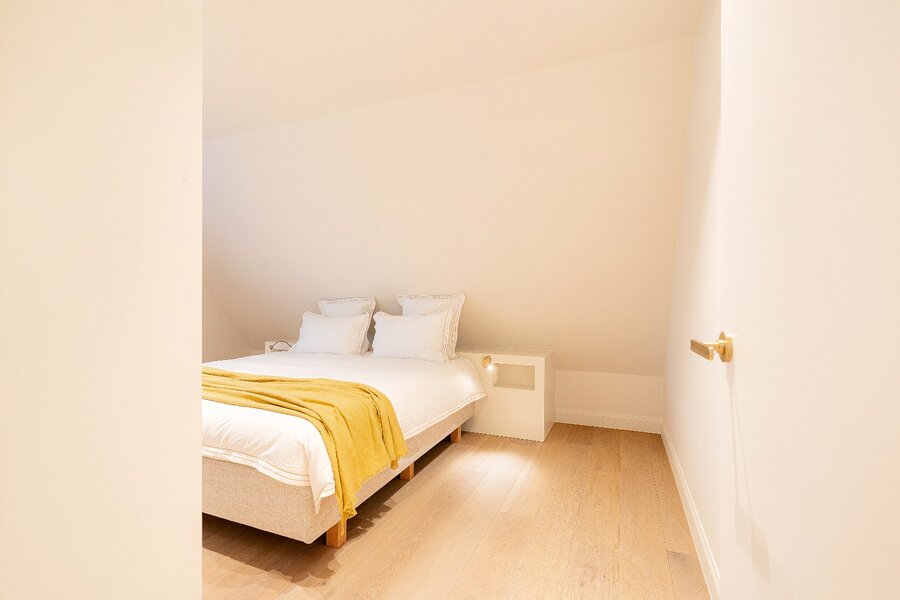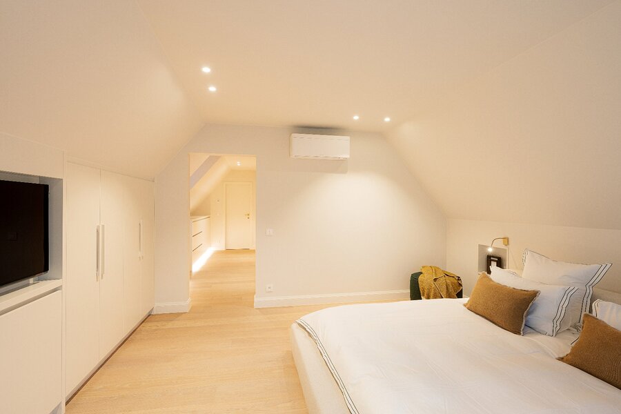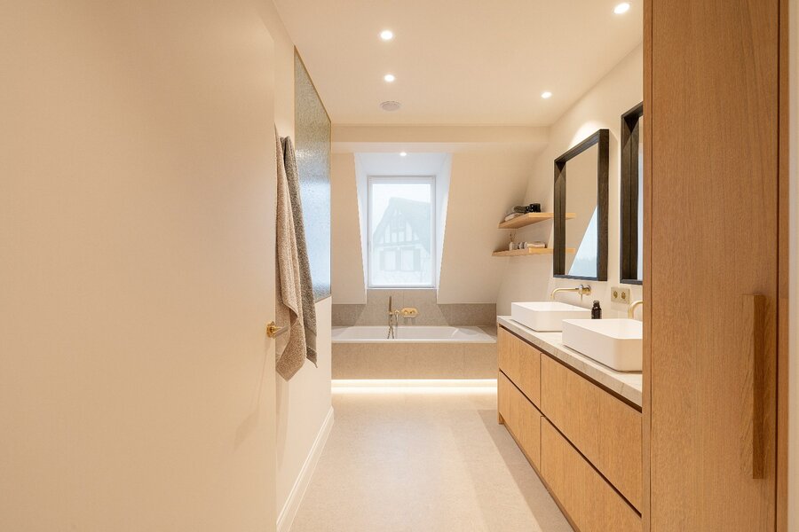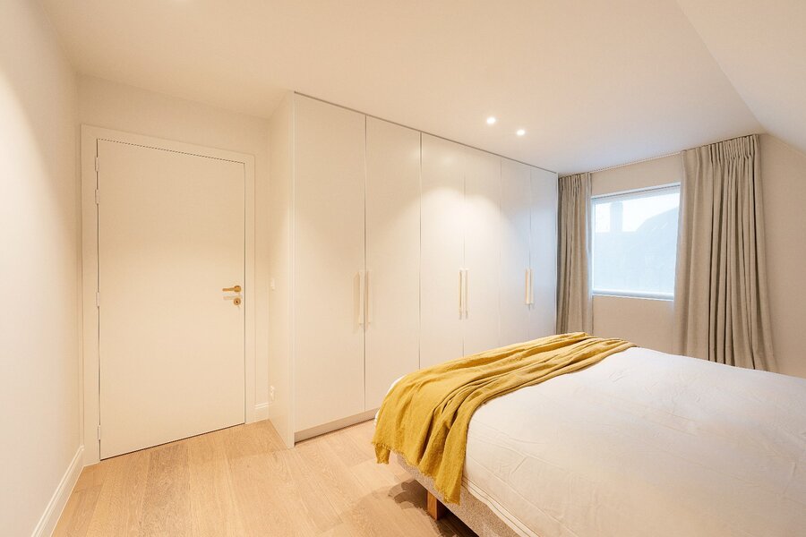 Op het gelijkvloers is er een volwaardige slaapkamer met badkamer, die ook perfect kan dienen als kantoor of wellnessruimte.